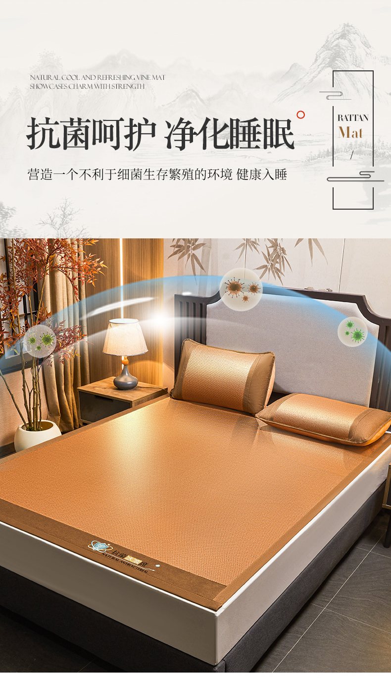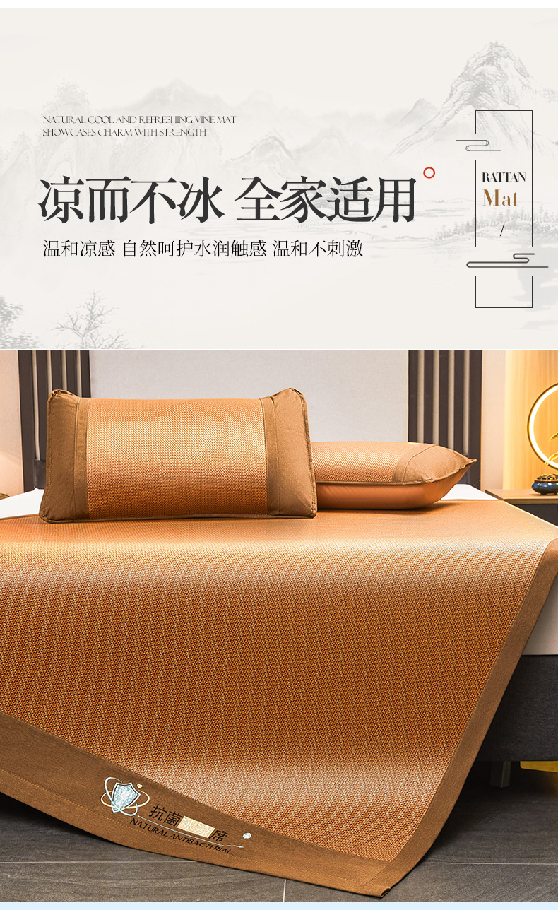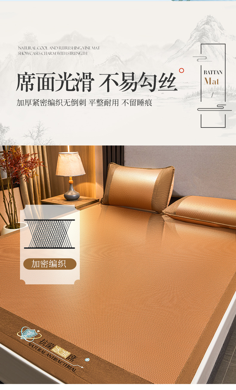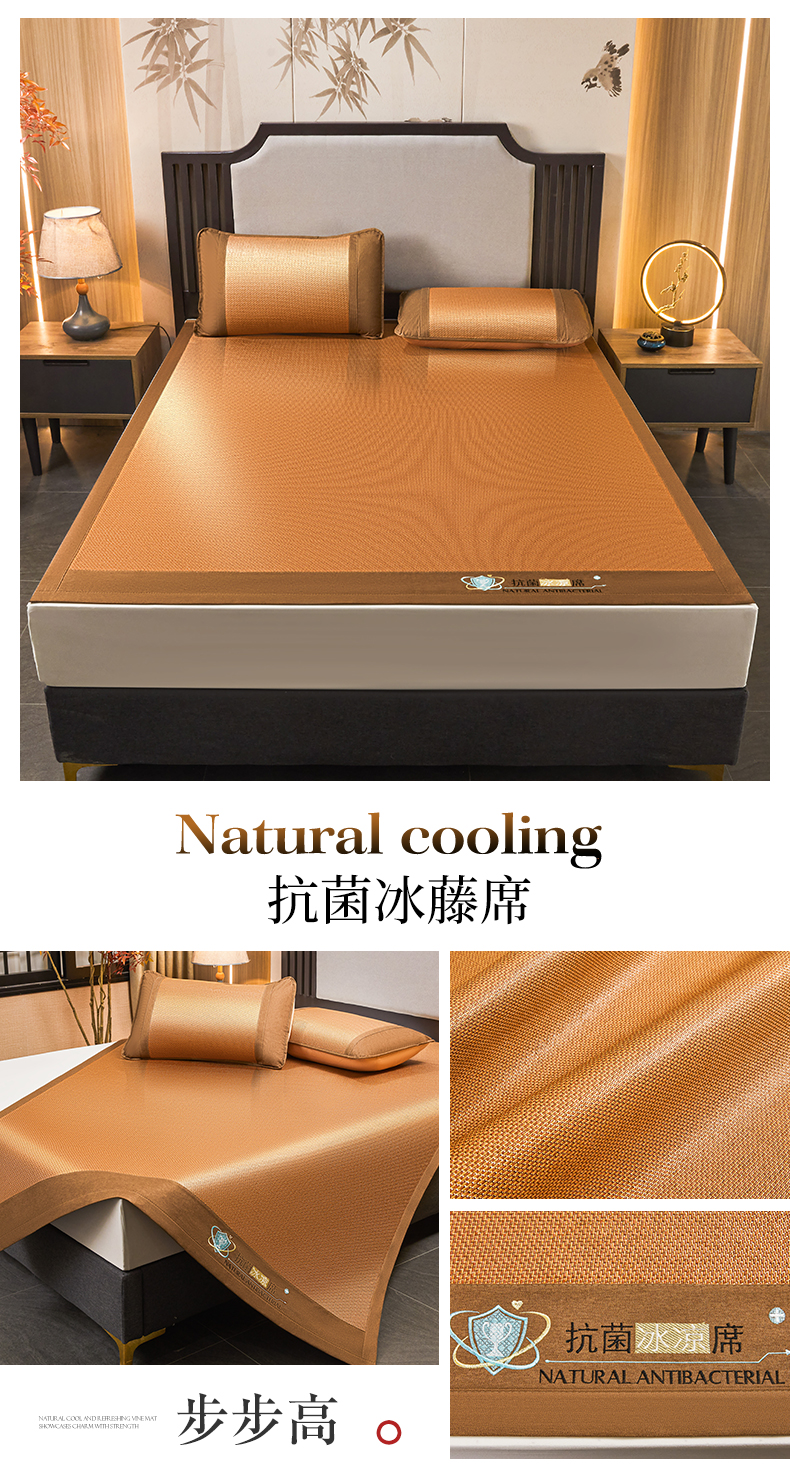 当前位置: 91家纺网 > 商品网购 > 床上用品 > 凉席 > 其他凉席 > 航途席业 2025新款冰藤席凉席三件套宽包边抗菌刺绣款冰藤凉席 步步高