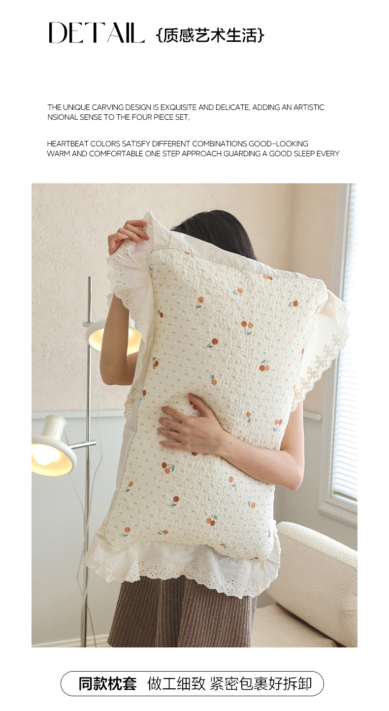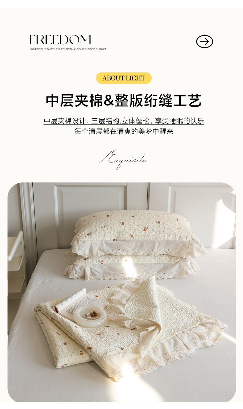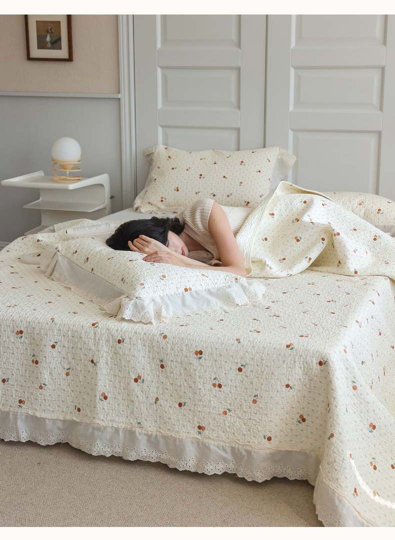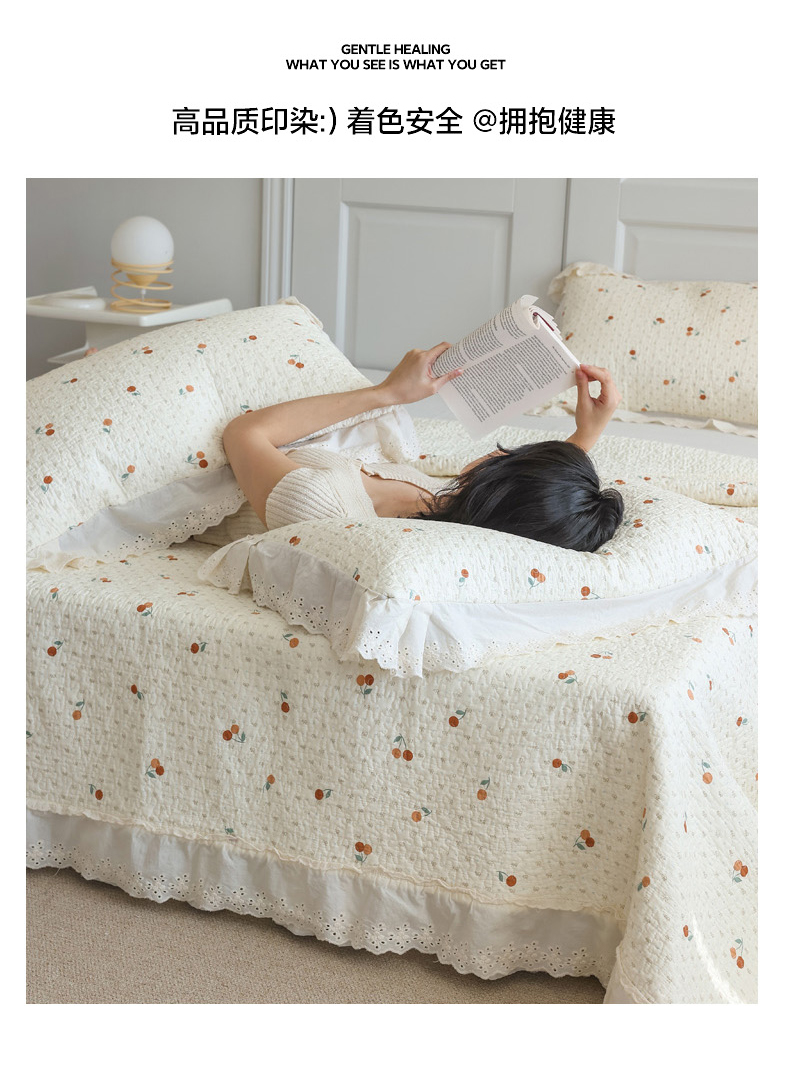 商品名称:万盛家纺 2025新款全棉水洗花边床盖三件套 甜心小果