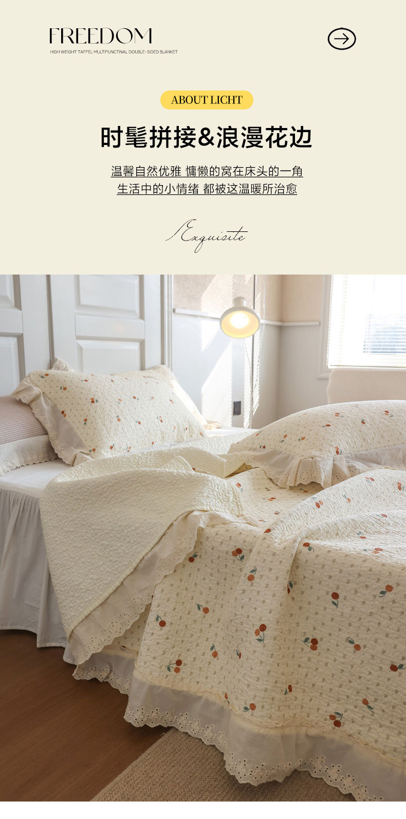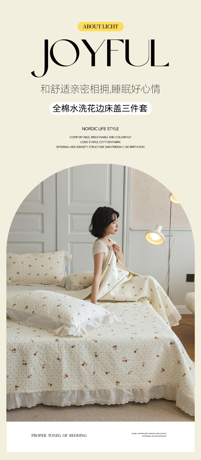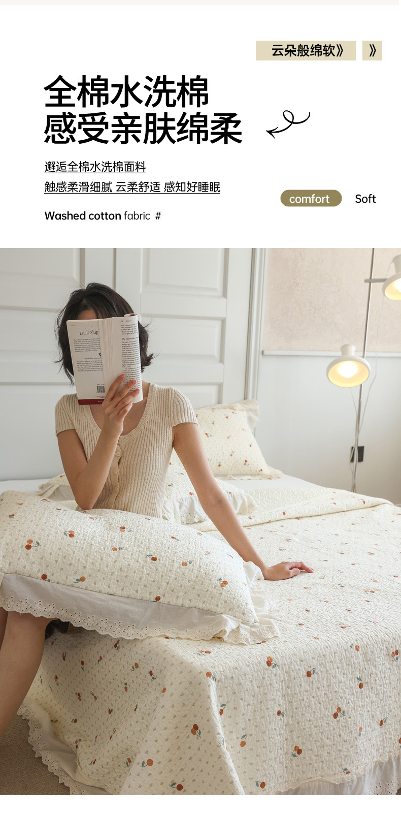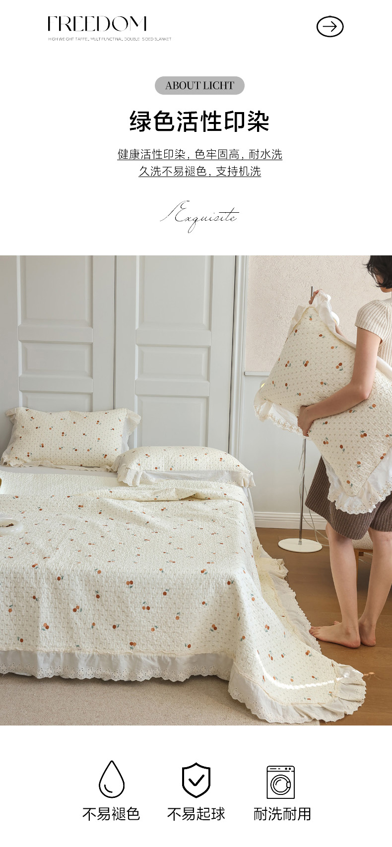 商品名称:万盛家纺 2025新款全棉水洗花边床盖三件套 甜心小果