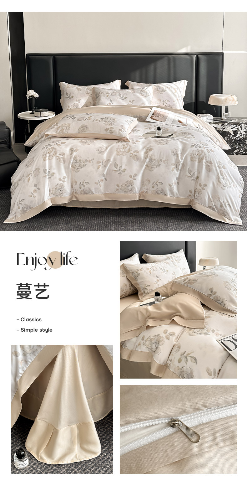商品名称:金阳光家纺 2025新款高级简奢款莱赛尔数码印宽边四件套(带礼盒包装) 蔓艺