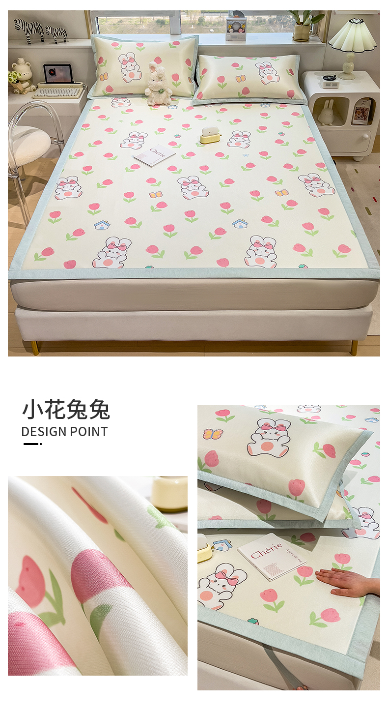 商品名称:兄弟坊 2025新款数码小清新印花冰丝席 小花兔兔
