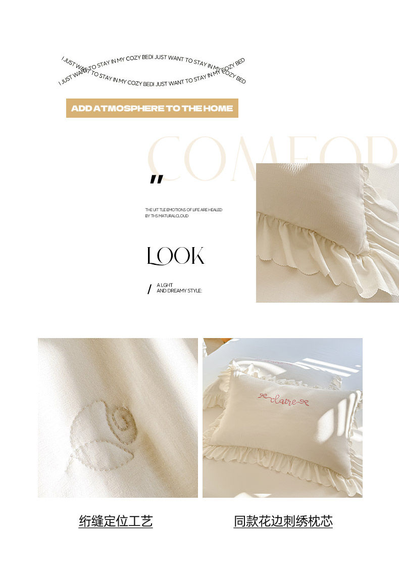 当前位置: 91家纺网 > 商品网购 > 床品套件 > 四件套 > 夏被四件套 > 绒世界 绒世界 2025新款针织棉提花加绣花烫钻夏被四件套翩然系列 翩然-象牙白