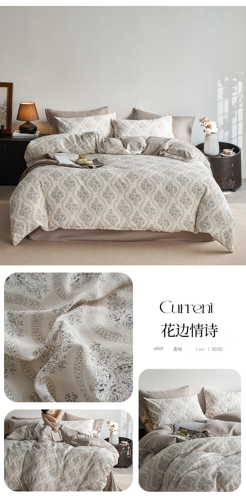 时年家纺 2025零汗纱™数码印花系列套件 花边情诗