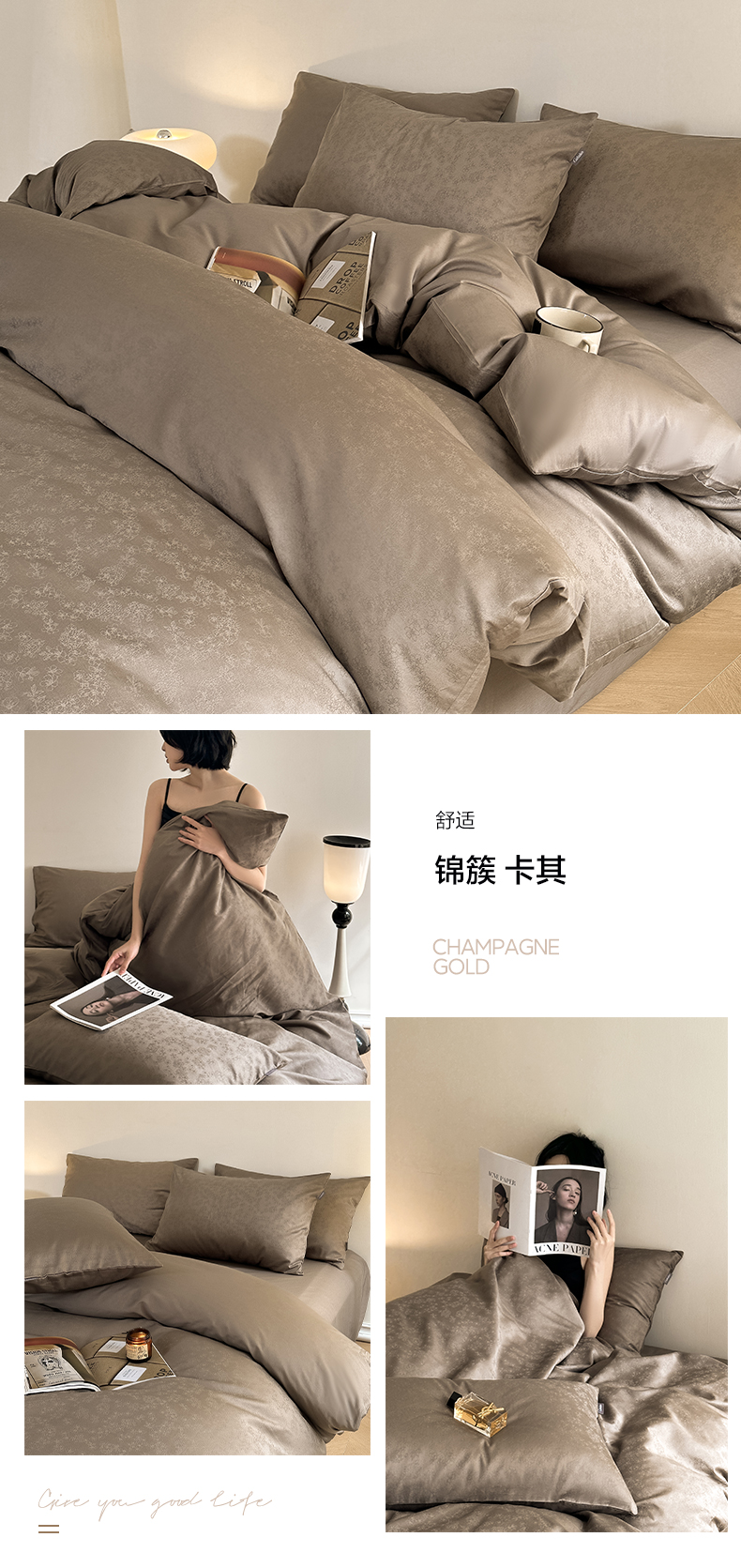 当前位置: 91家纺网 > 商品网购 > 床品套件 > 四件套 > 全棉普通四件套 > 2025新款60s长绒棉提花四件套系列1 锦簇-卡其