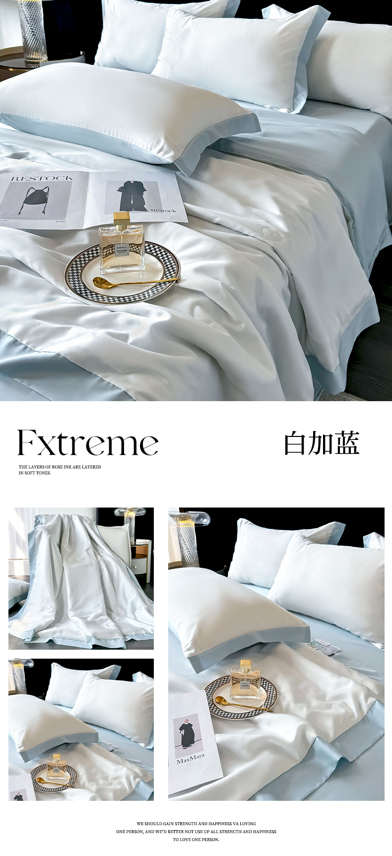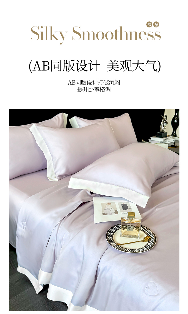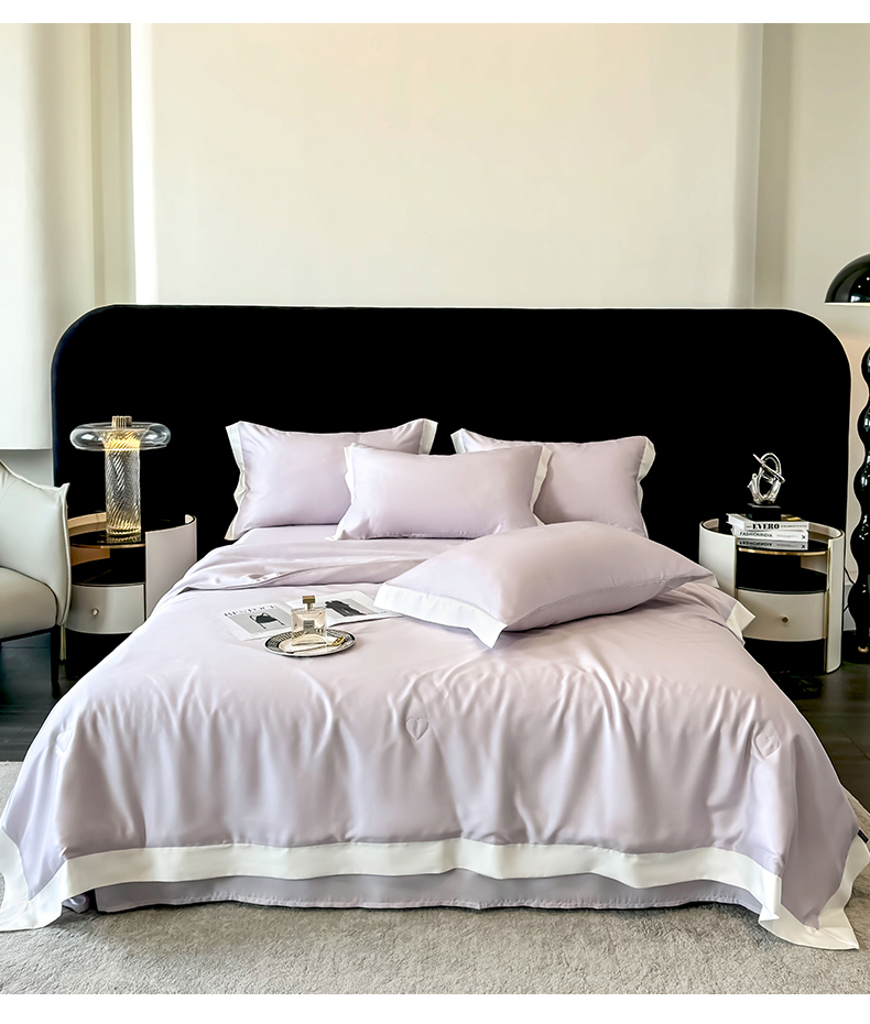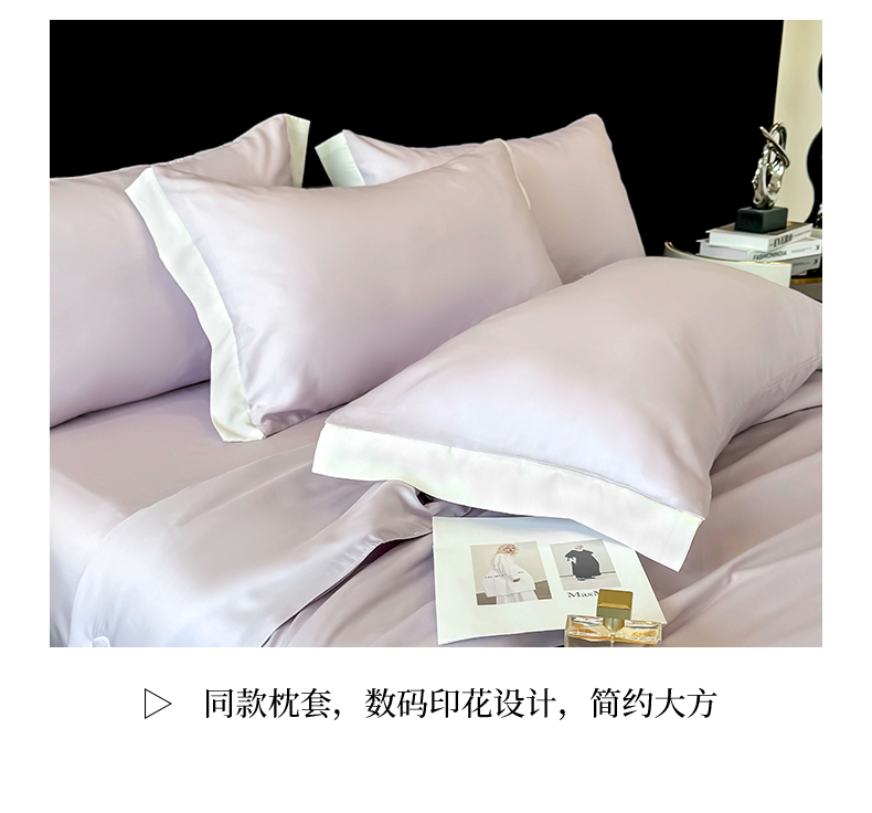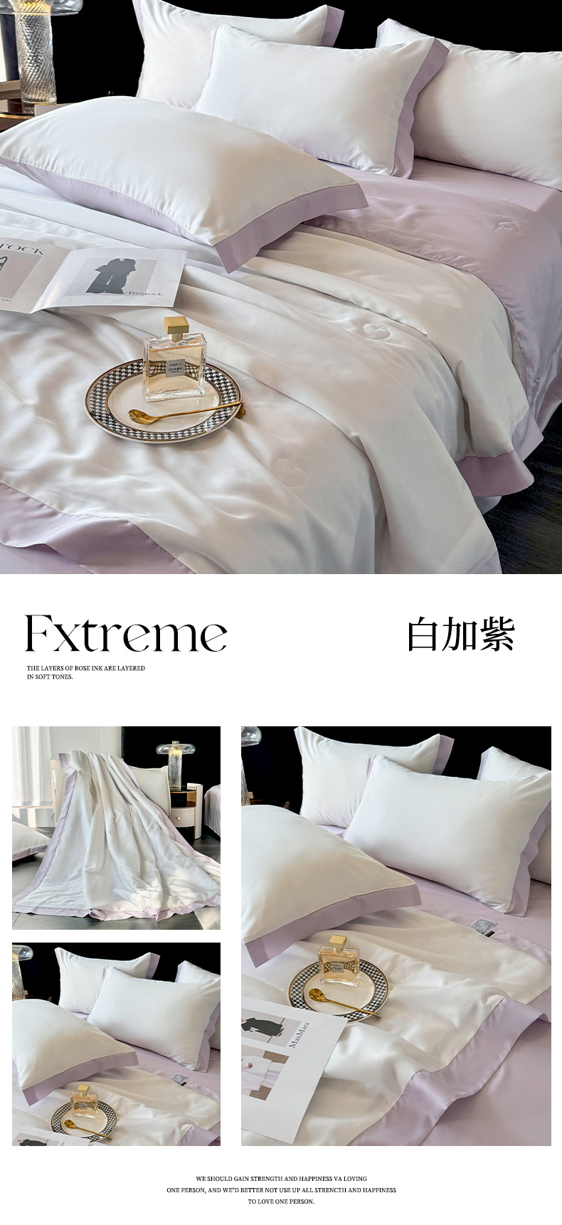 (总)迷尚家居 2025新款100%莱赛尔纯色双拼天丝夏凉被四件套,白加粉,白加蓝,白加紫,暮光紫,藕荷粉,浅灰紫