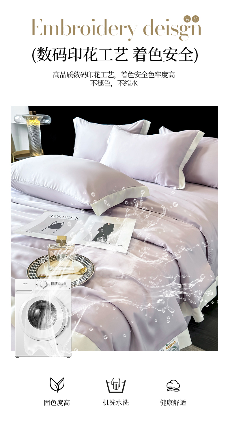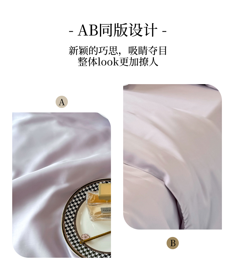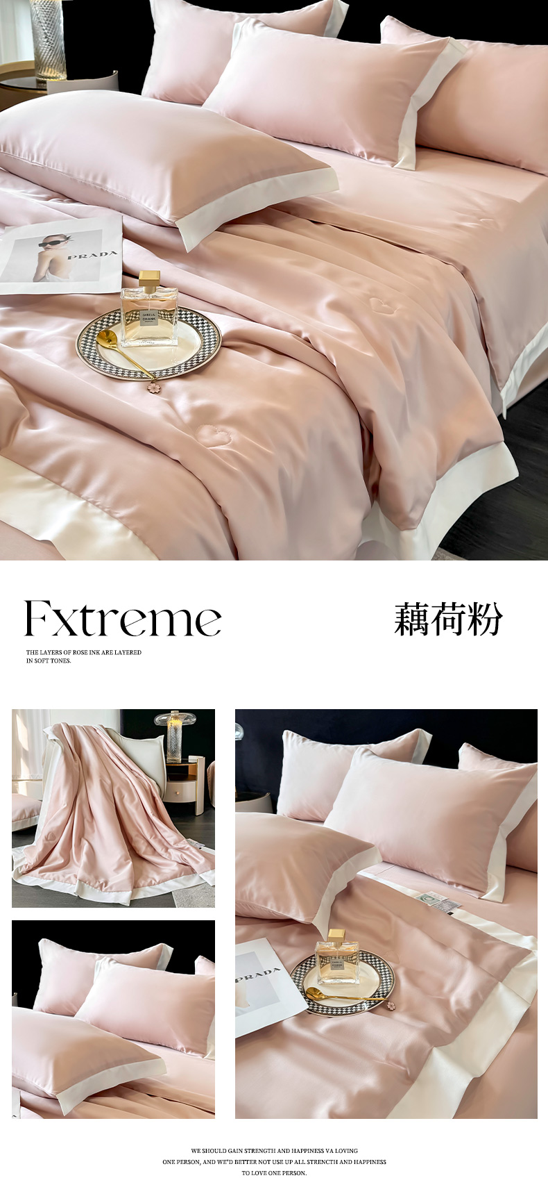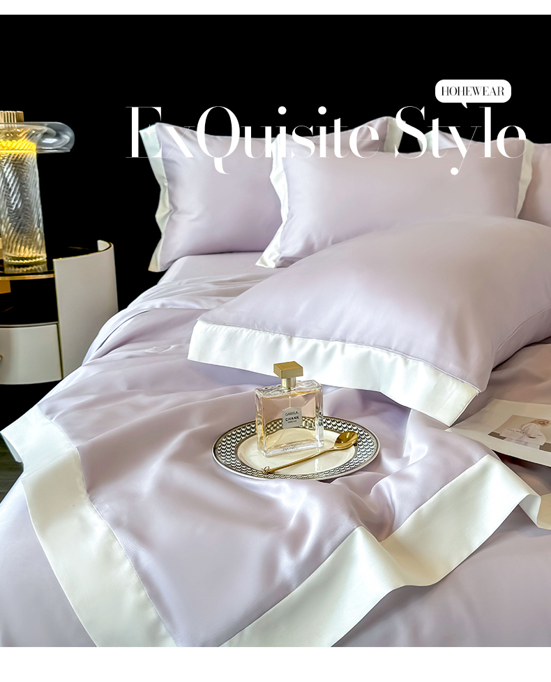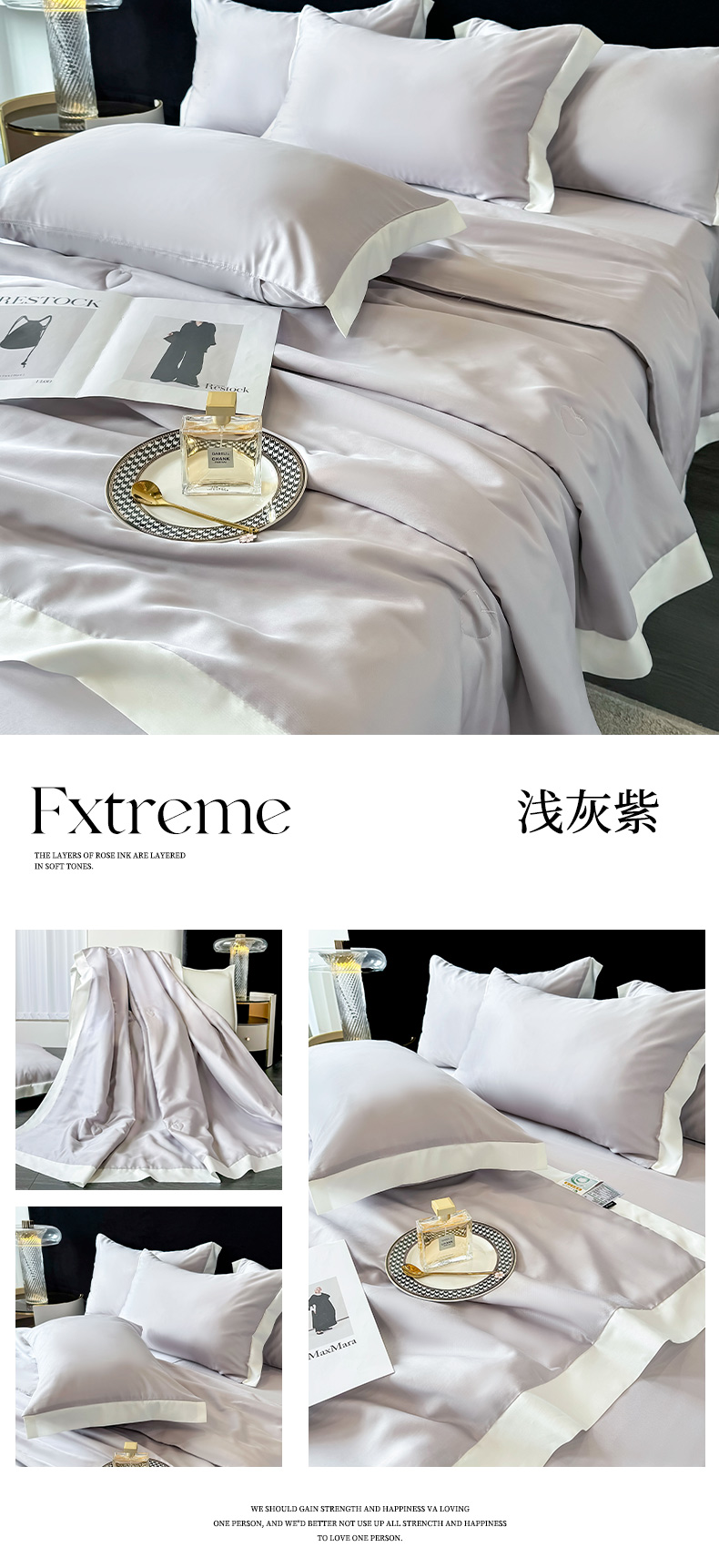 (总)迷尚家居 2025新款100%莱赛尔纯色双拼天丝夏凉被四件套,白加粉,白加蓝,白加紫,暮光紫,藕荷粉,浅灰紫