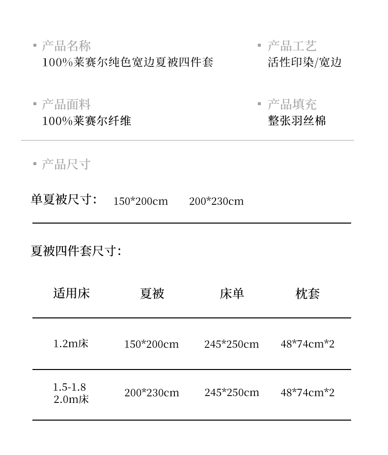 商品名称:(总)迷尚家居 2025新款100%莱赛尔纯色双拼天丝夏凉被四件套