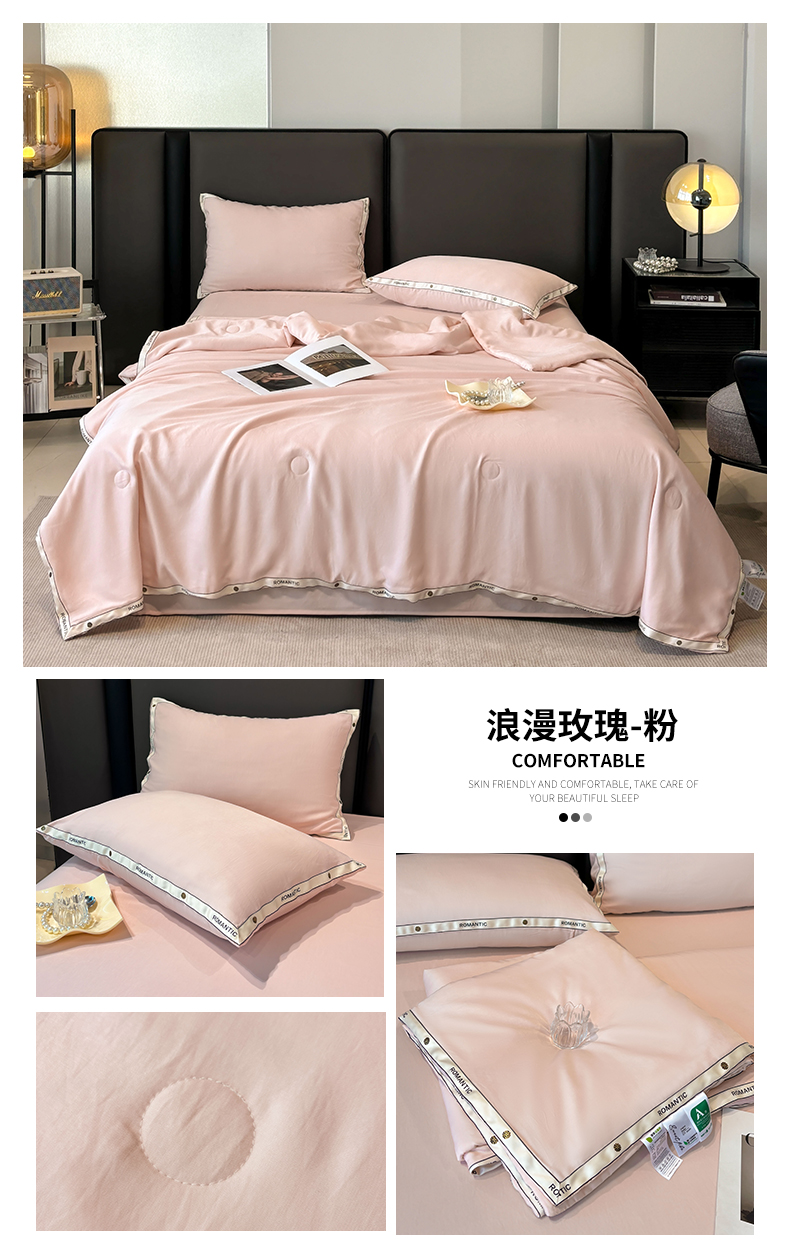梵蒂莎 2025新款赫本风莫代尔天丝夏被四件套 浪漫玫瑰-粉