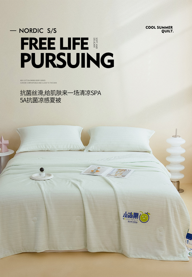 商品名称:慕木家纺 2025新款5A抗菌小冰果锦涤冰丝凉感夏被 小冰果-马卡绿