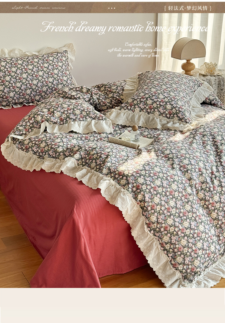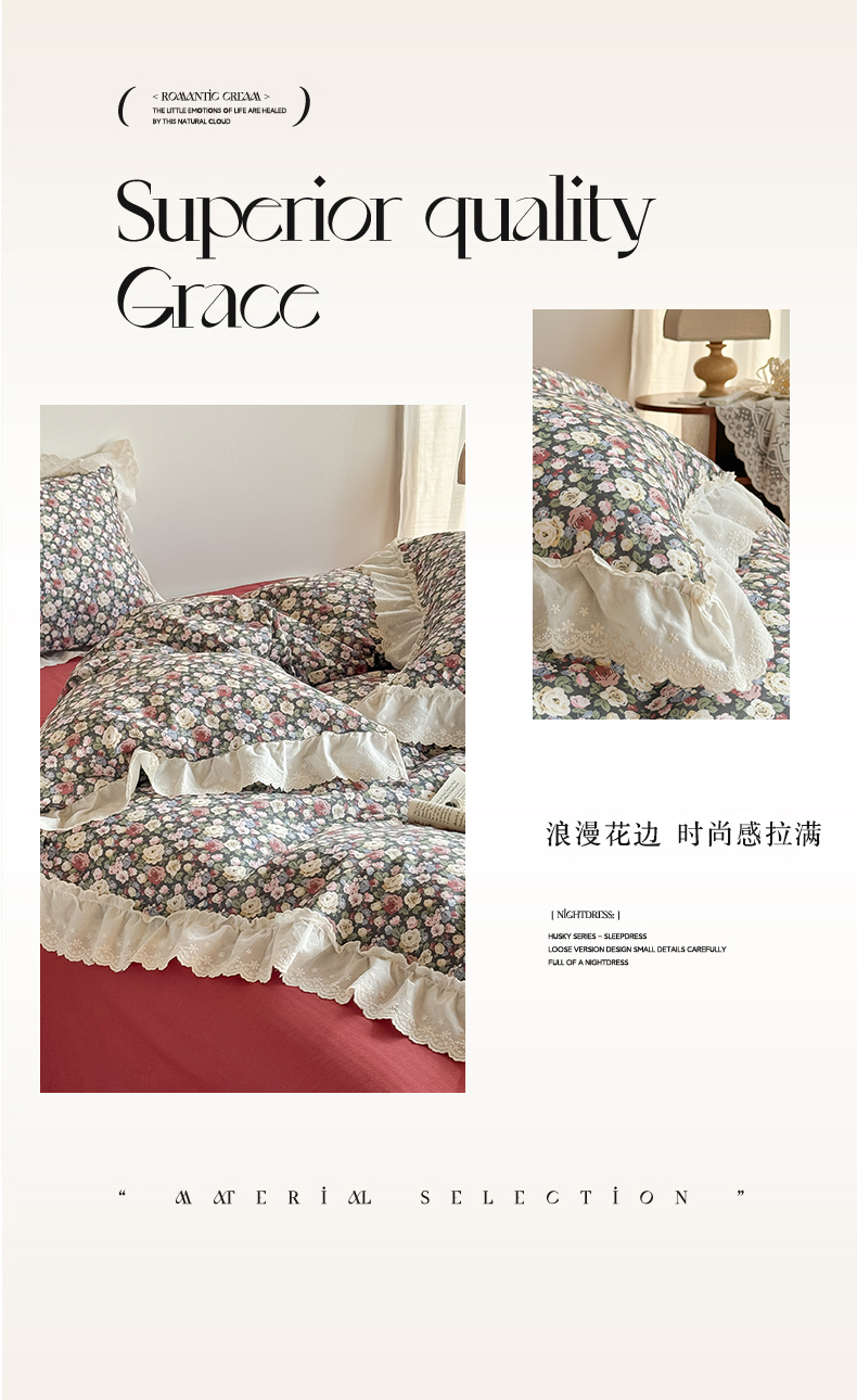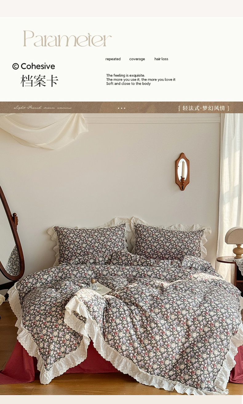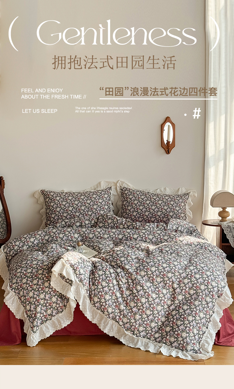 (总)塔塔 2025新款法式田园全棉针织棉花边印花夏被,花奈,假日,洛可可,漫恋,木槿,浅汐,小樱桃,洋兰