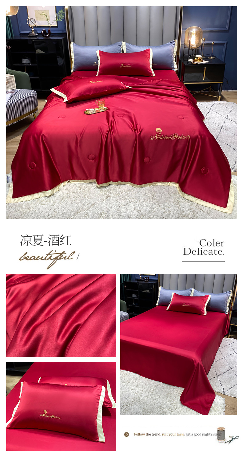 当前位置: 91家纺网 > 商品网购 > 床品套件 > 四件套 > 夏被四件套 > 经年 2025新款水洗真丝刺绣夏被四件套 凉夏-酒红