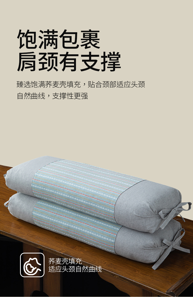 商品名称:(总)仁宇枕业 2025新款全棉色织提花水洗棉条纹四角绑带护颈全荞麦壳枕头枕芯