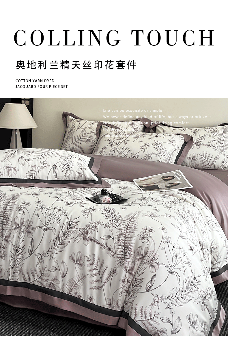 商品名称:618家纺 2025新款A类60S100支兰精天丝数码印花四件套 秋本