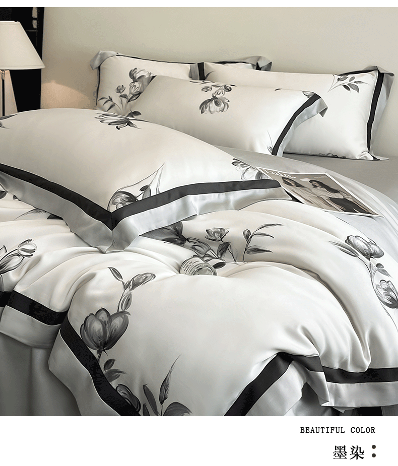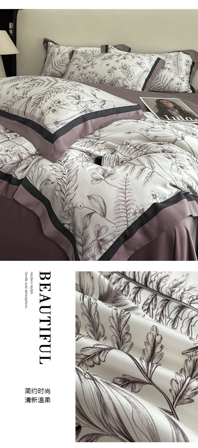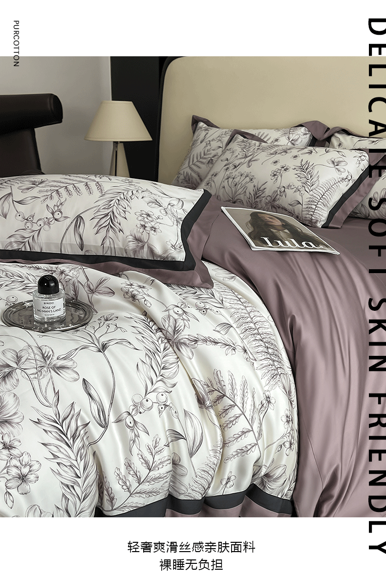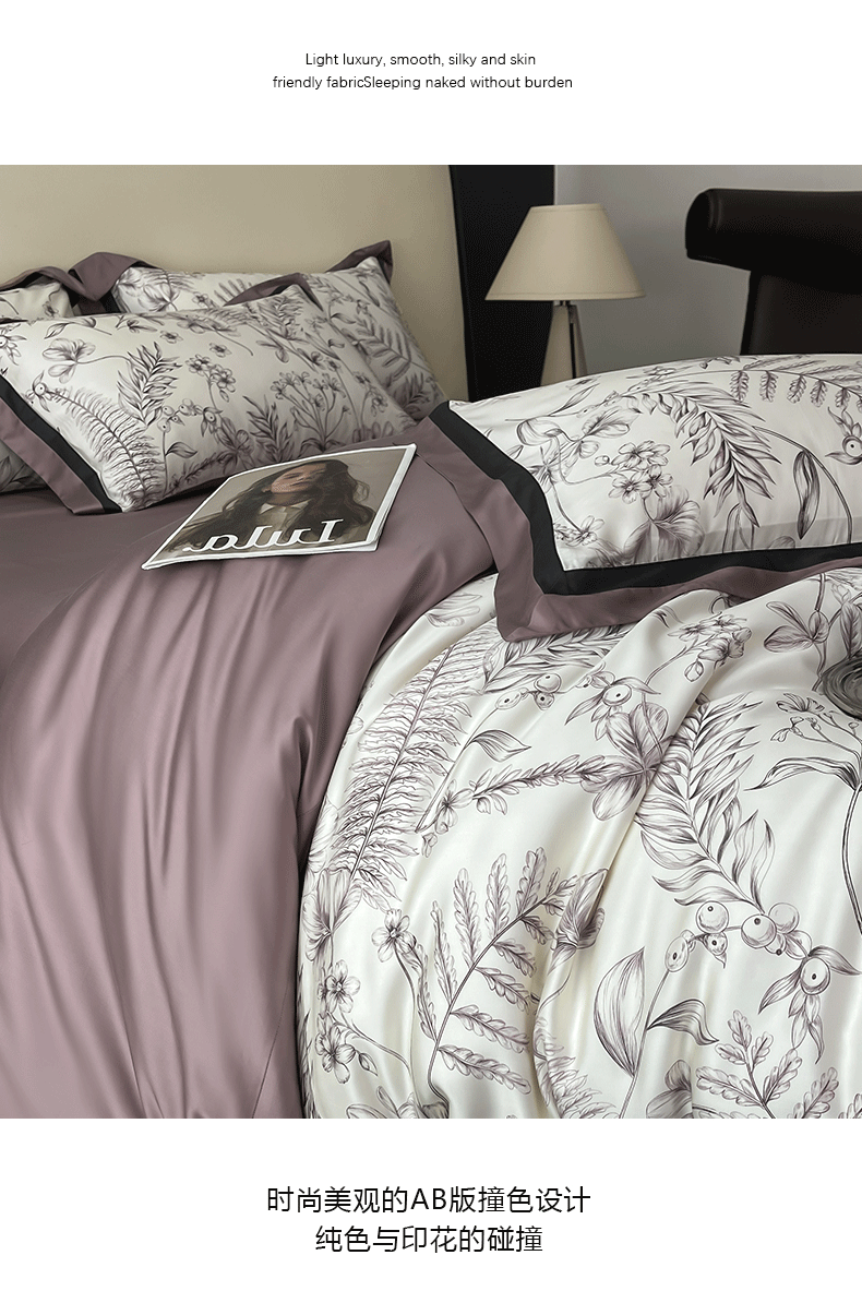 618家纺 2025新款A类60S100支兰精天丝数码印花四件套 秋本