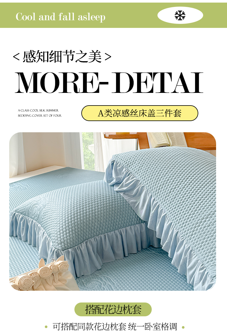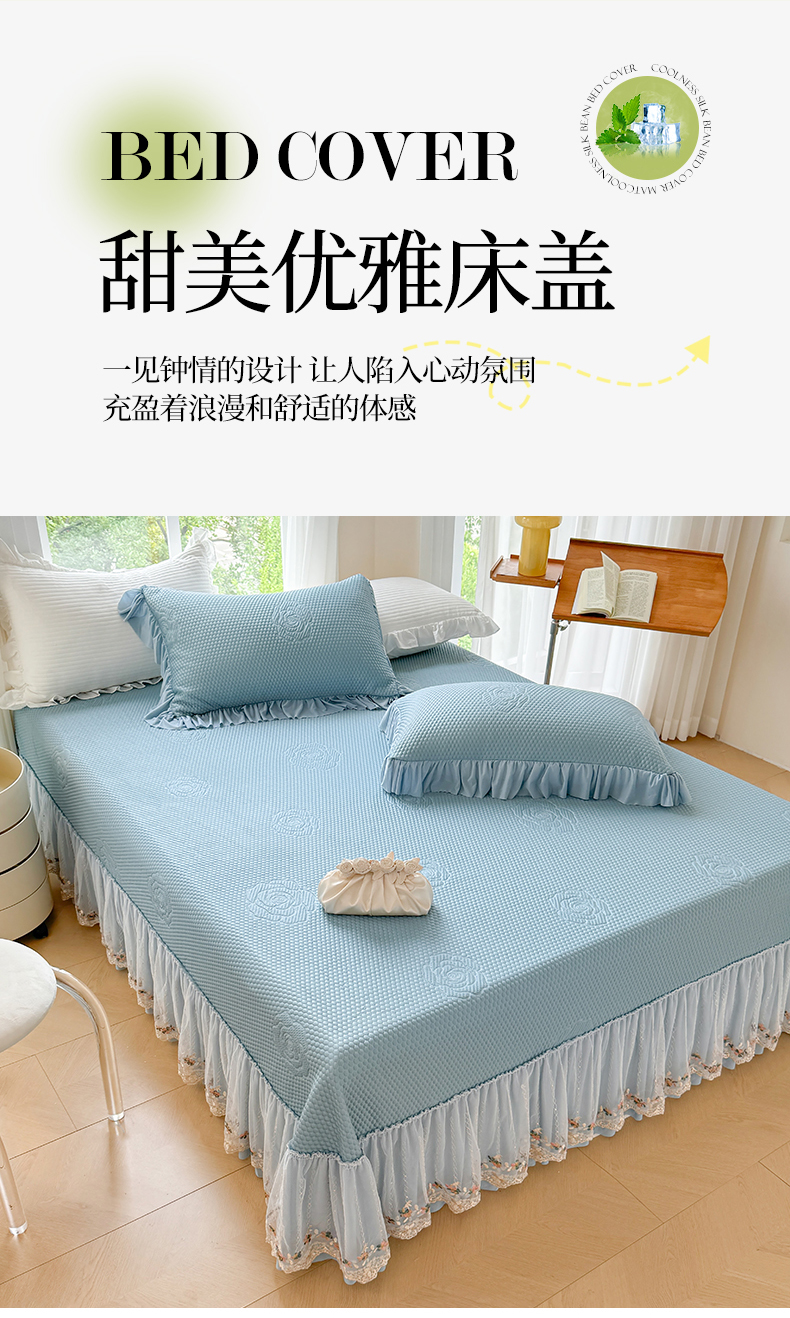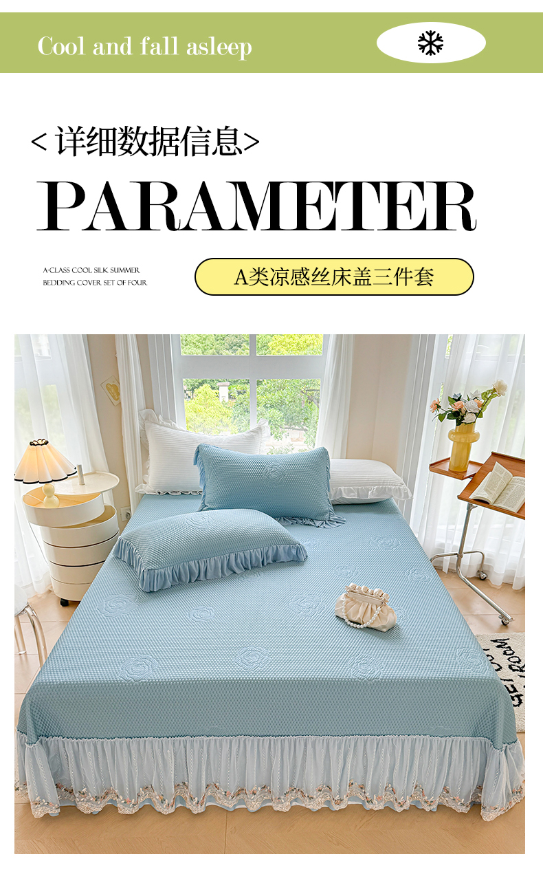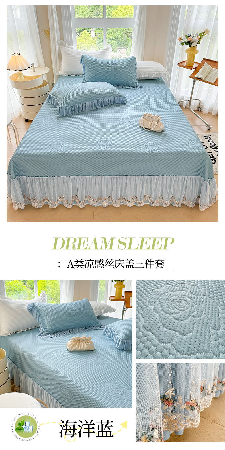 商品名称:恒爱家纺 2025新款冰丝国色天香床盖三件套 海洋蓝