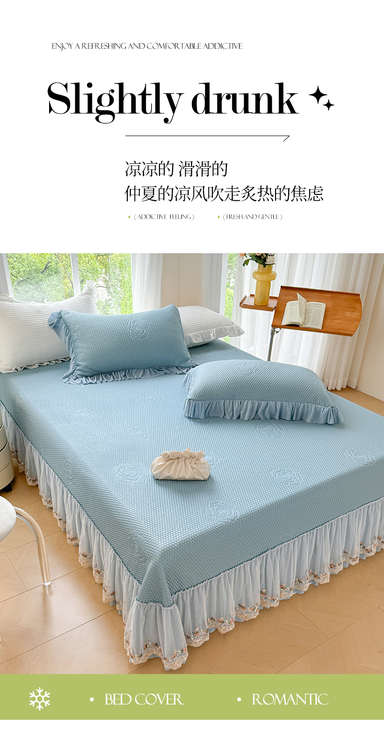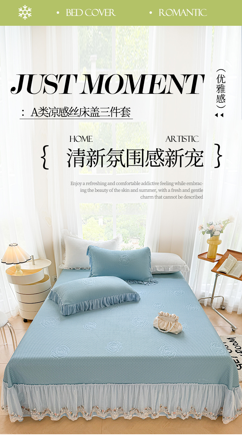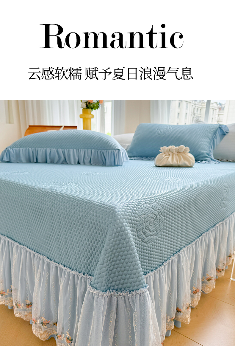 商品名称:恒爱家纺 2025新款冰丝国色天香床盖三件套 海洋蓝