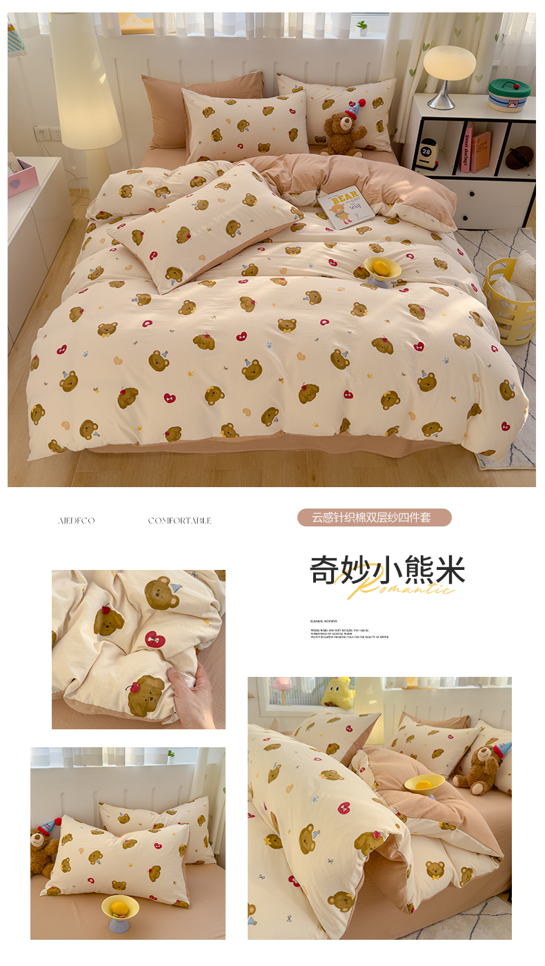 (总)宏源家纺 2025新款A类超柔有氧云感双层纱四件套,爱心咖,爱意浓,赫拉,花枝兔,猫咪恋人,秘密花园,摩卡,奇妙小熊灰,奇妙小熊米,小猫时光蓝,小美冰激凌,玉花园