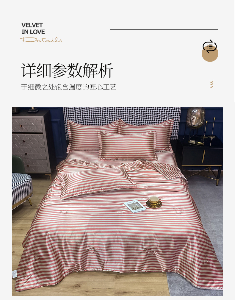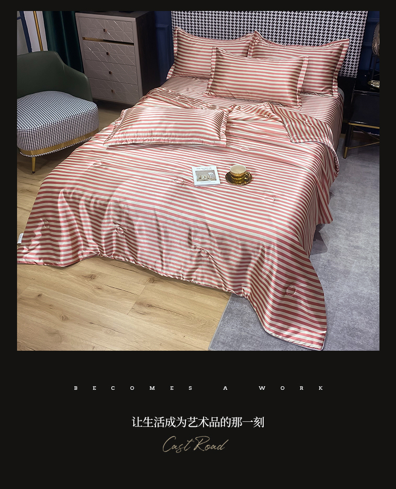 当前位置: 91家纺网 > 商品网购 > 床品套件 > 四件套 > 夏被四件套 > 经年 2025新款条纹丝绸冰丝夏被 红棕中条-夏被