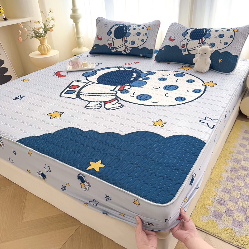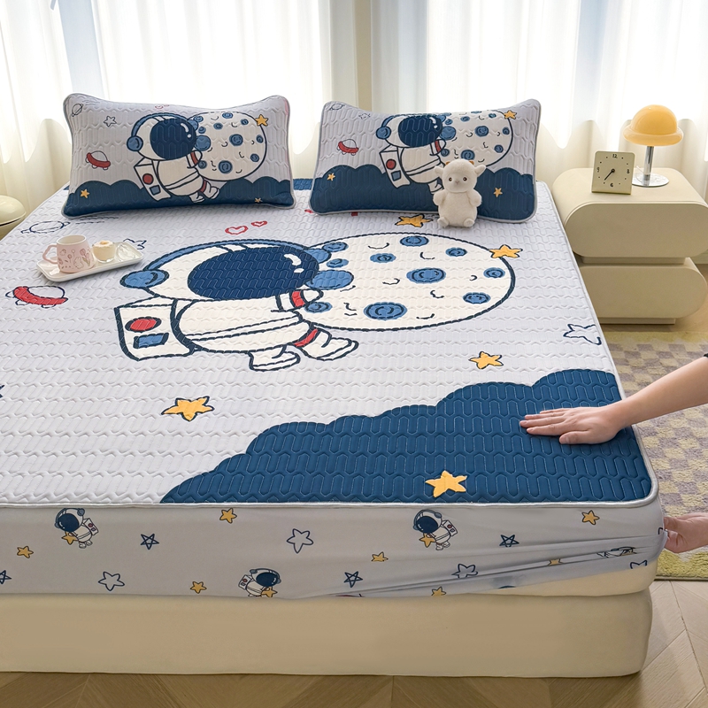 商品名称:希廷顿 2025新款大版印花乳胶凉席床笠款三件套 遨游太空