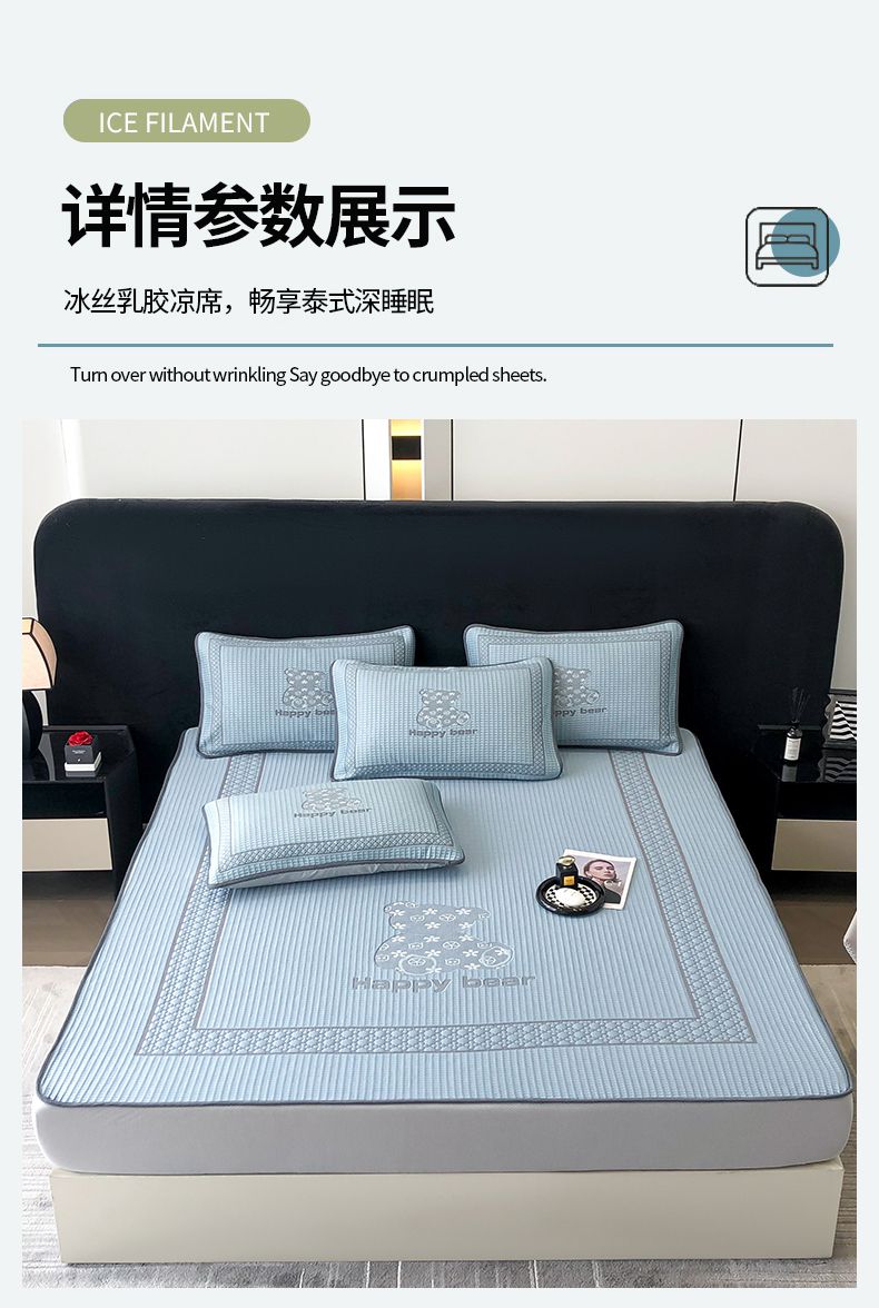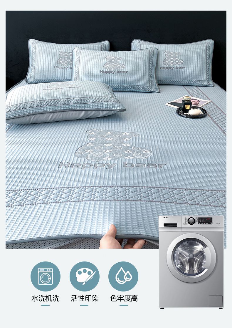 商品名称:首尔家纺 2025新款大版凉感丝凉席 快乐熊-天空蓝