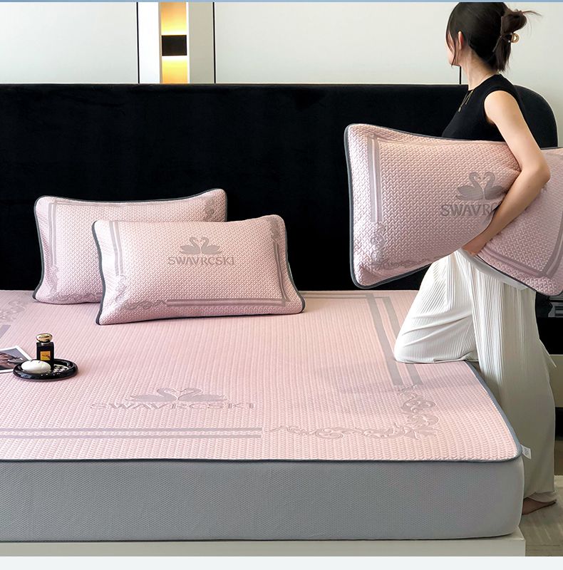 首尔家纺 2025新款大版凉感丝凉席 天鹅-粉