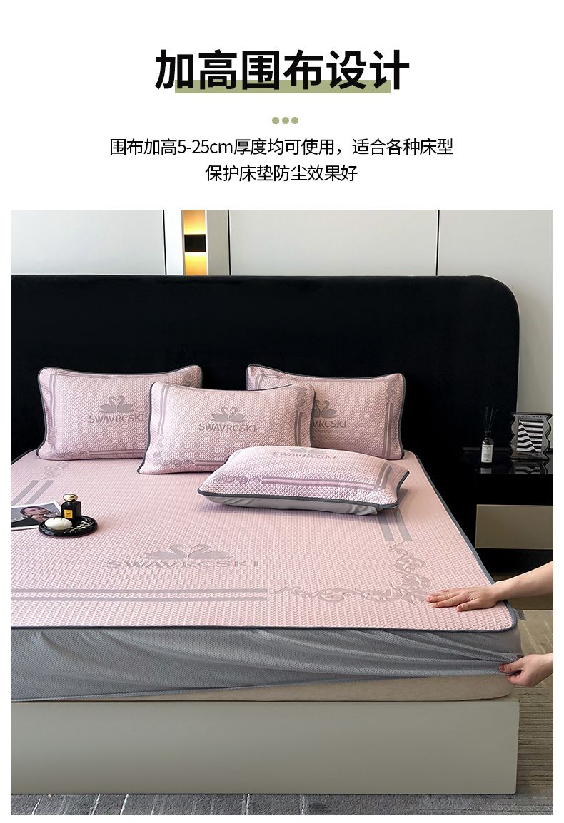 商品名称:首尔家纺 2025新款大版凉感丝凉席 天鹅-粉