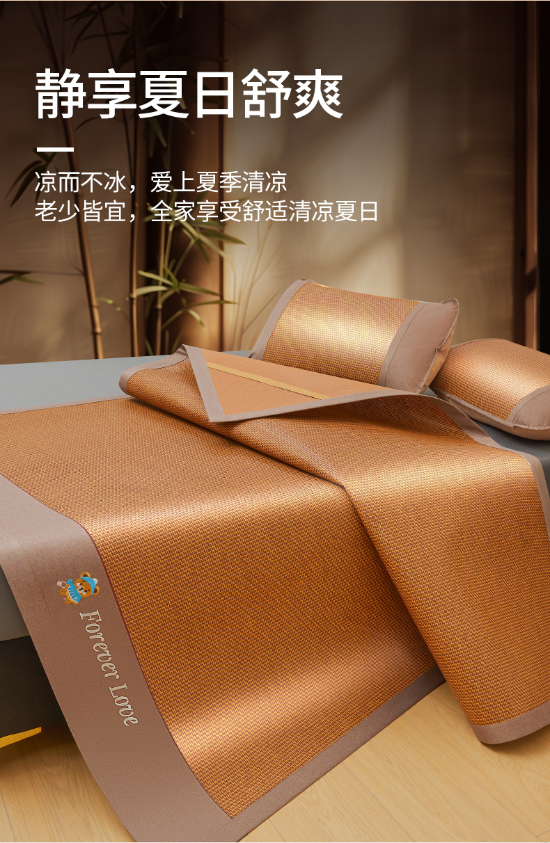 (总)琪琪阁 2026新款冰藤三明治凉席,小米花-灰色,小米花-金色,小米花-绿色,星星-浅灰,星星-深咖,星星-水绿,星星-雾蓝,星星-樱粉
