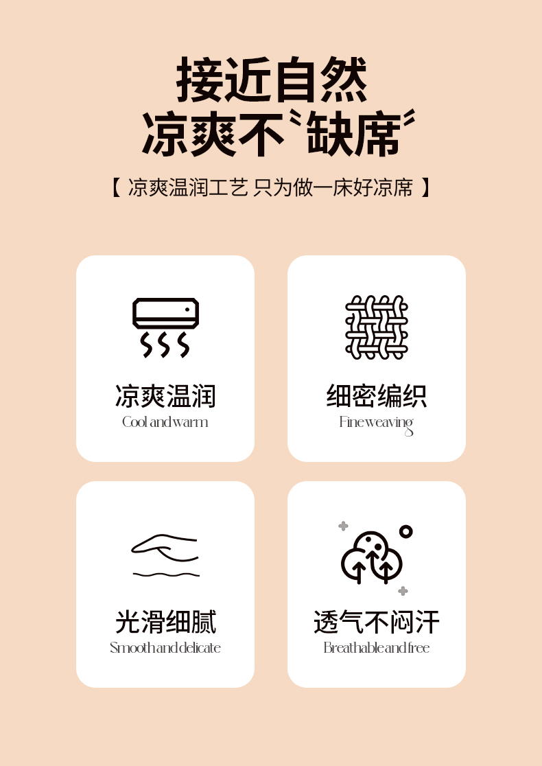 (总)琪琪阁 2026新款印尼藤双面凉席,古典棕,湖水蓝,清新粉,银河灰