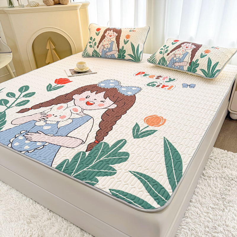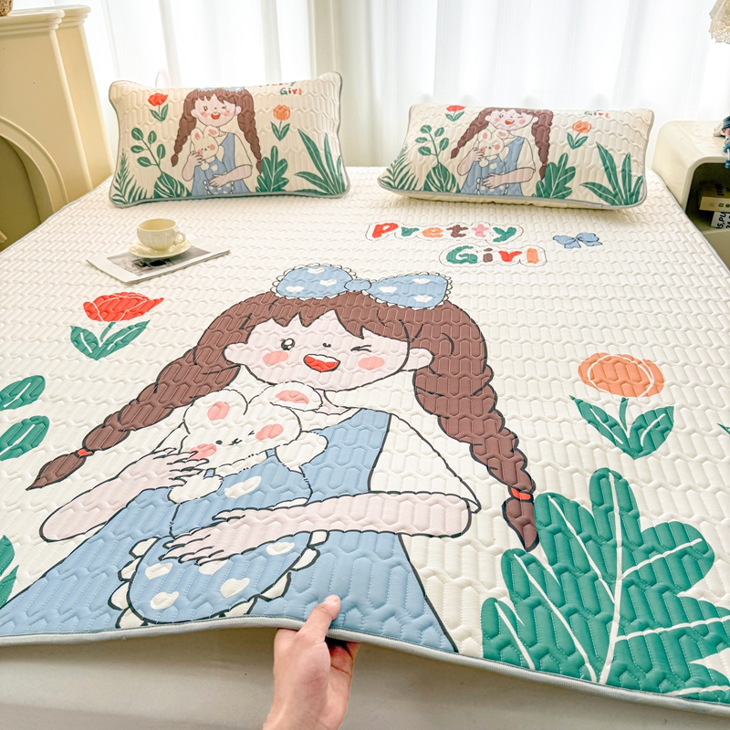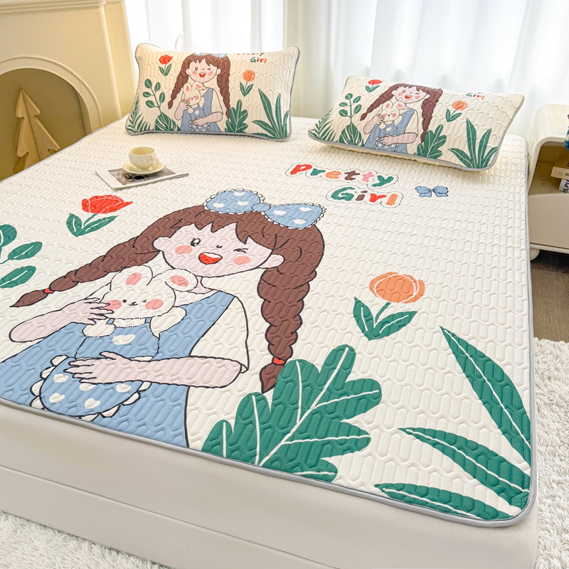 商品名称:希廷顿 2025新款大版印花乳胶凉席三件套 花园女孩
