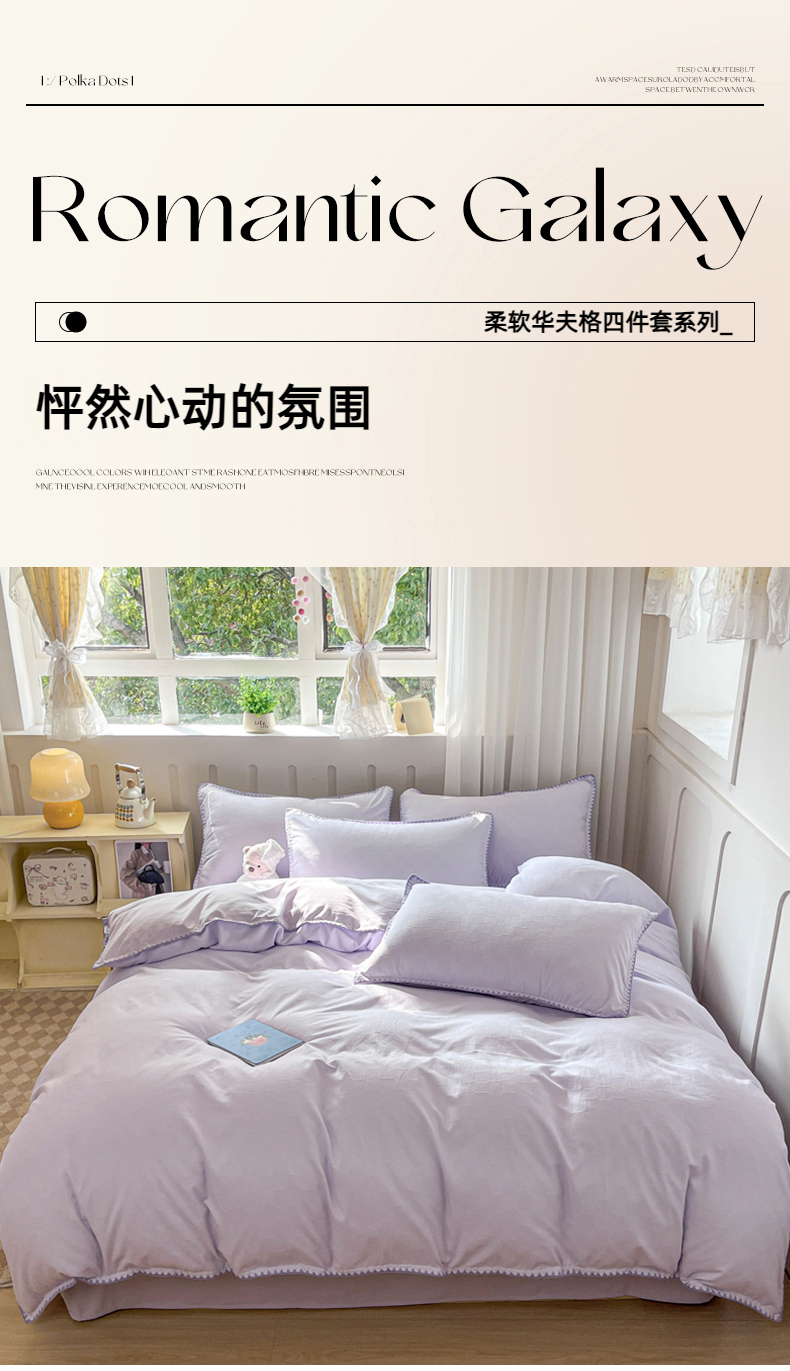 当前位置: 91家纺网 > 商品网购 > 床品套件 > 四件套 > 其它四件套 > 豪美鑫 2025新款亲肤棉华夫格四件套 华夫格-芋泥紫