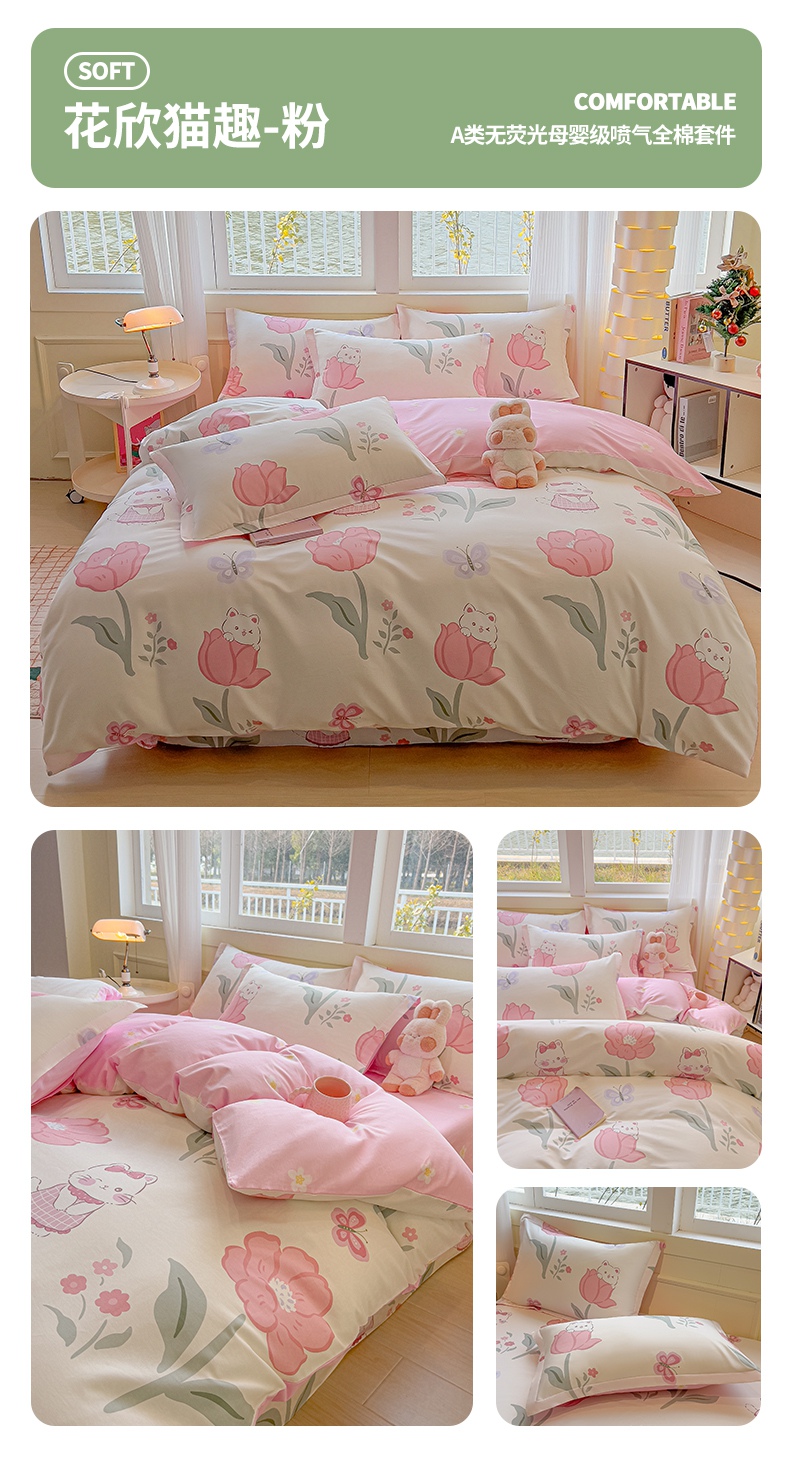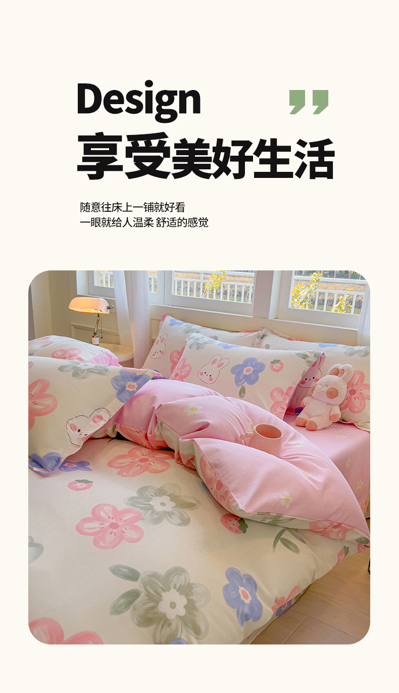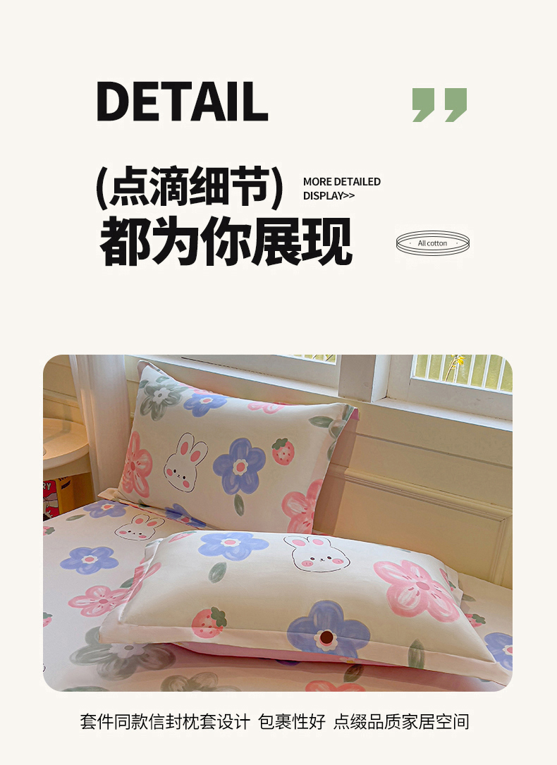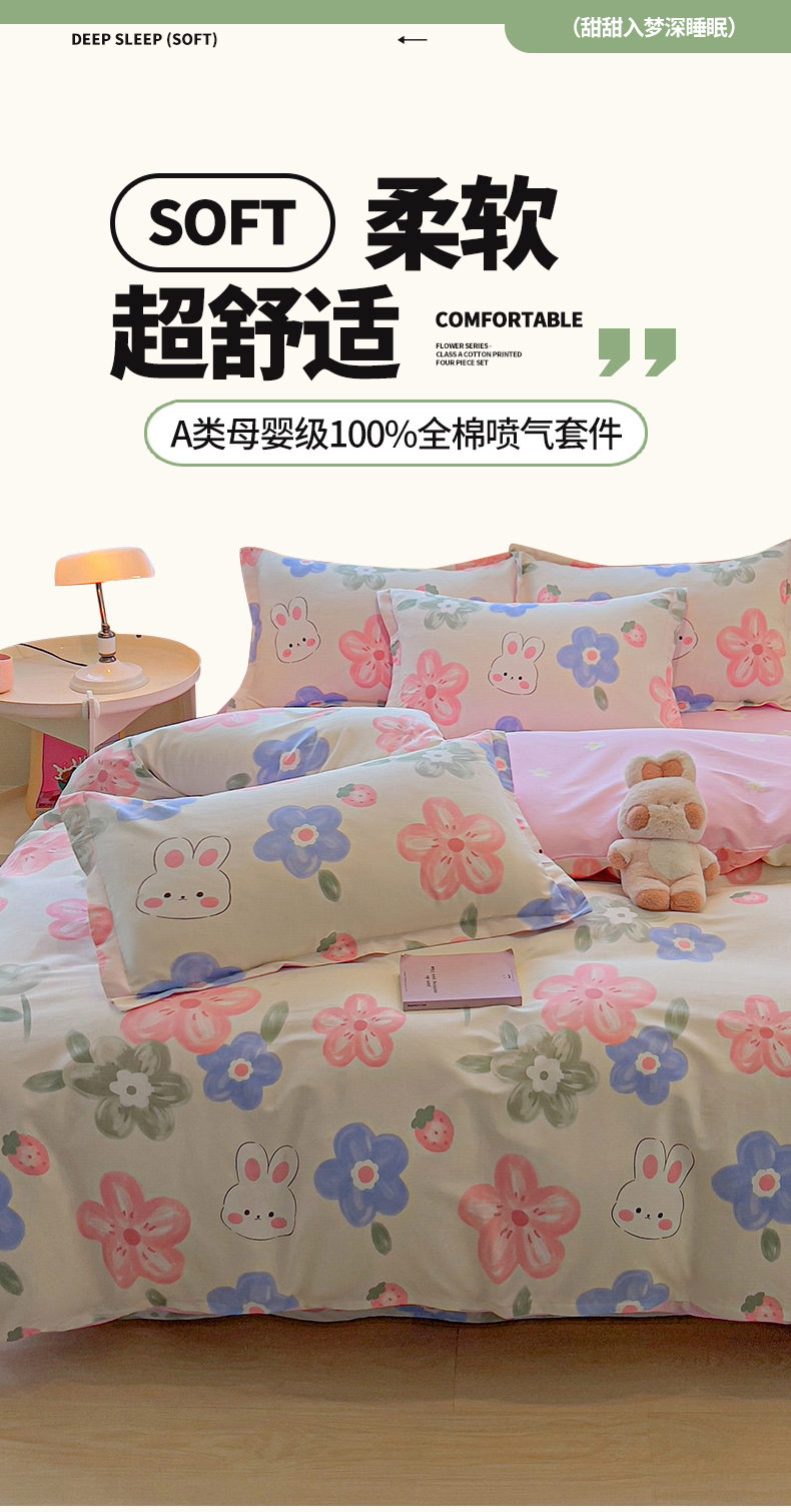 商品名称:拾物记 2025新款A类无荧光全喷气全棉12868四件套 花间小兔