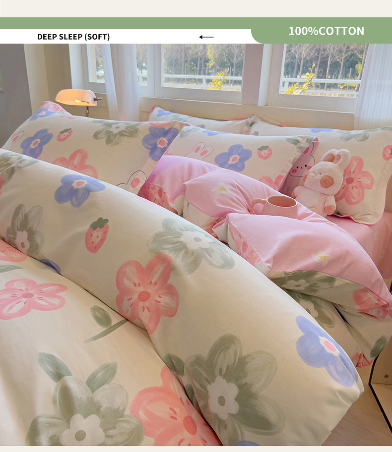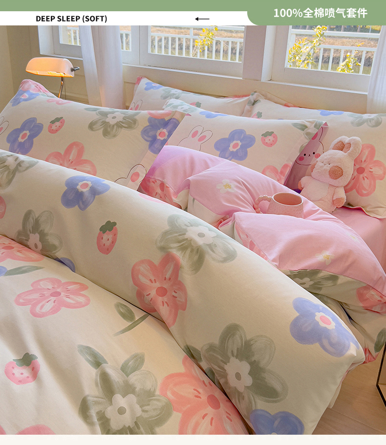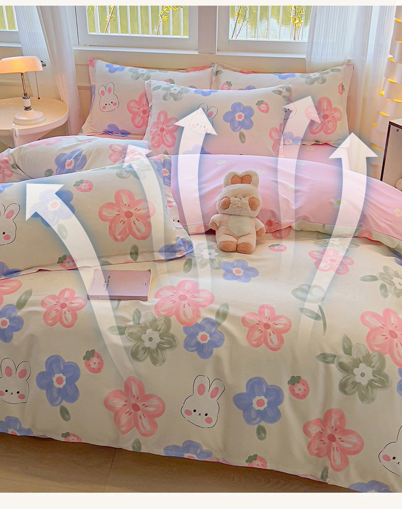 拾物记 2025新款A类无荧光全喷气全棉12868四件套 花间小兔
