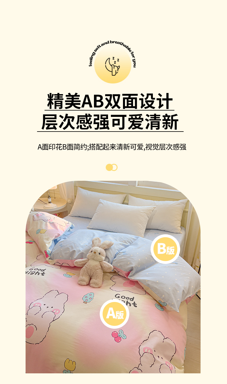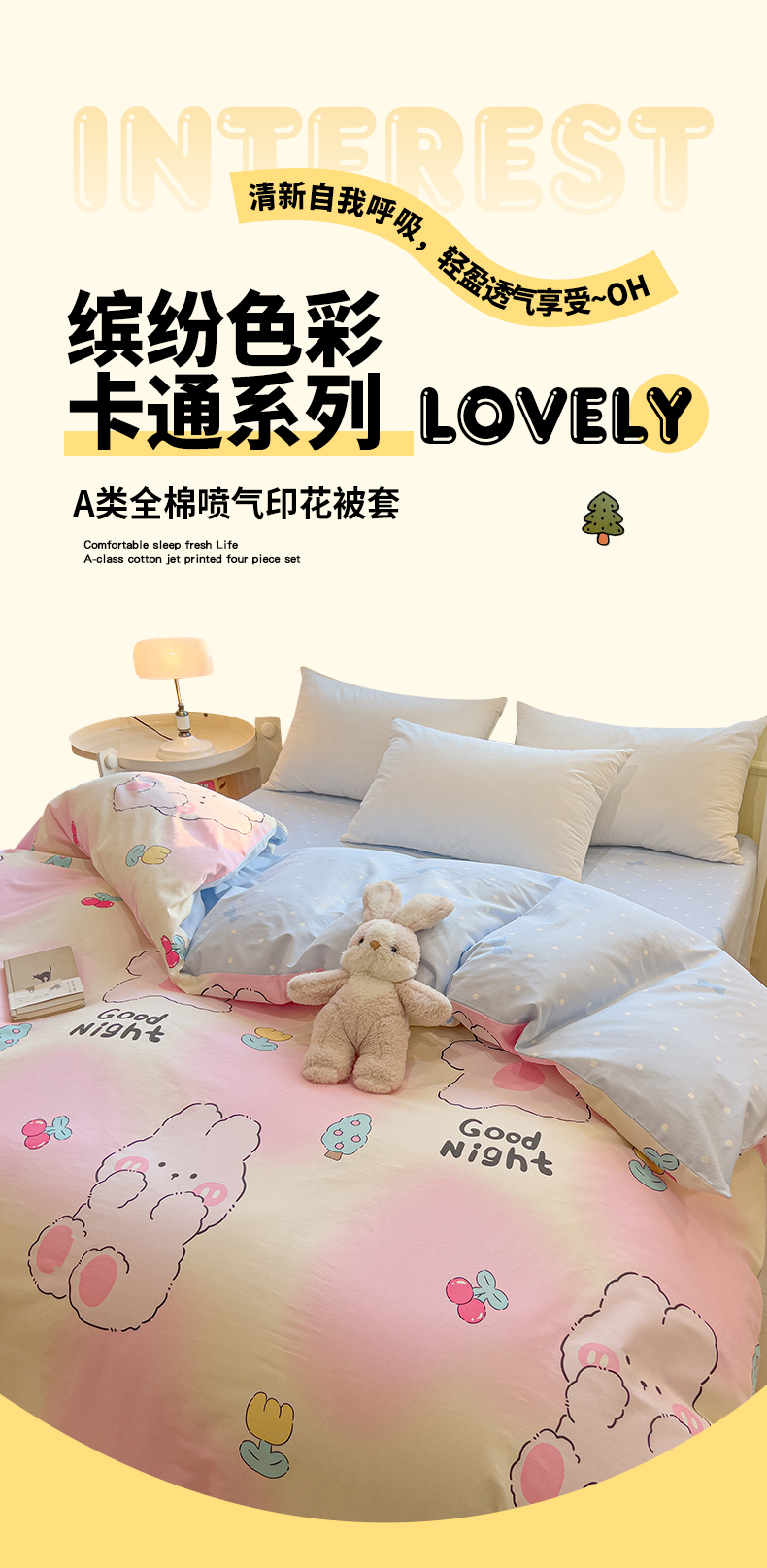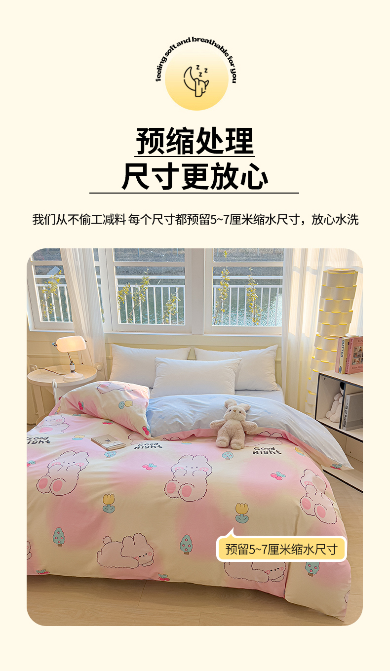 • 91家纺网 家纺一手货源 找家纺 拾物记 2025新款A类无荧光全喷气全棉12868单被套 可欣兔