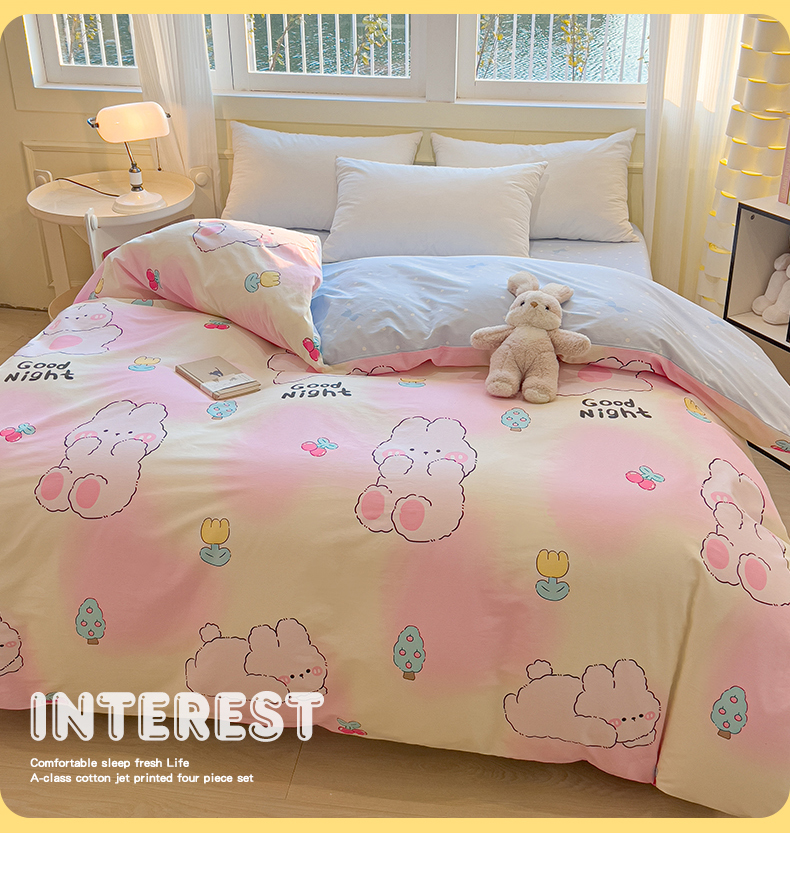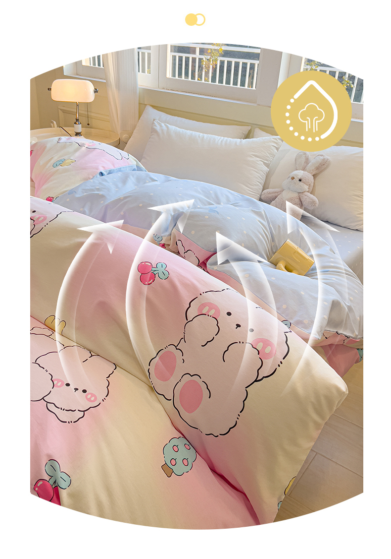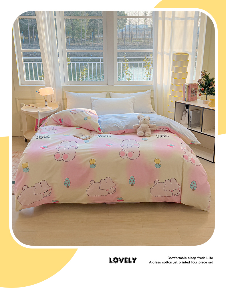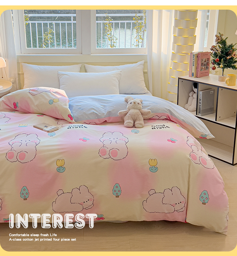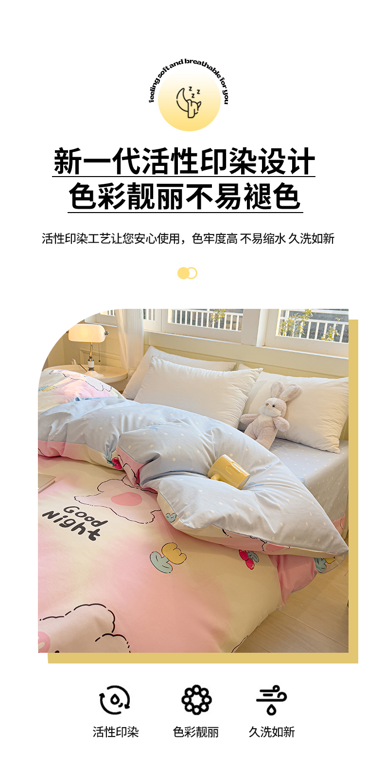 • 91家纺网 家纺一手货源 找家纺 拾物记 2025新款A类无荧光全喷气全棉12868单被套 可欣兔