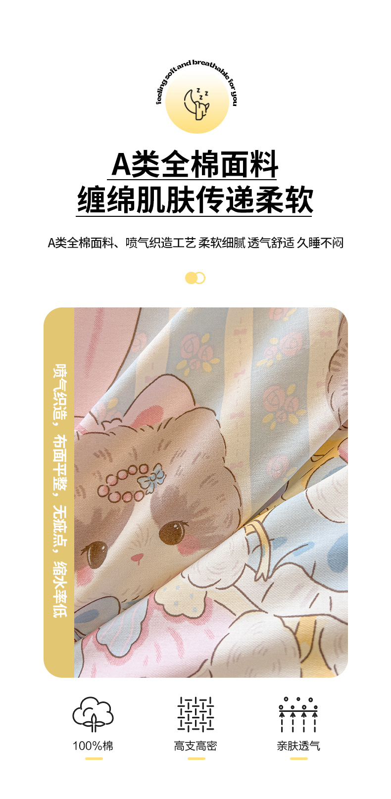 • 91家纺网 家纺一手货源 找家纺 (总)拾物记 2026新款第一批12868A类全棉单品床笠系列(床笠宽度预留10厘米缩水尺寸, 90x200床笠高度15厘米,适合4-15厘米学生床垫使用,其他尺寸床笠高28cm 适合4-28厘米,森林伙伴,挽星河,爱心喵,彩虹兔,草莓小狗,乘风宇宙,刺绣潮声,点点森林熊,粉粉猫咪酱,滚滚绣球团,花漫歌,简笔小汪,镜子海洋粉,开心派对,快乐宇航员,蓝星动物园,美梦花园,咪咕日常,太空卫士,太空熊,糖果幼儿园,糖纸童年,甜蜜纪念日,星际仔仔,星星柯基,星星童话园,元气小布,云间甜梦