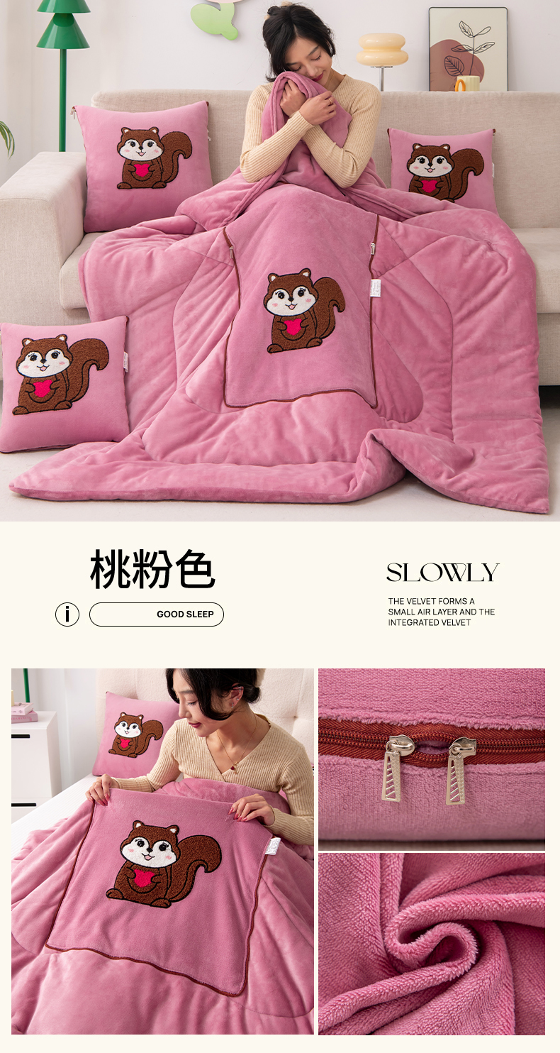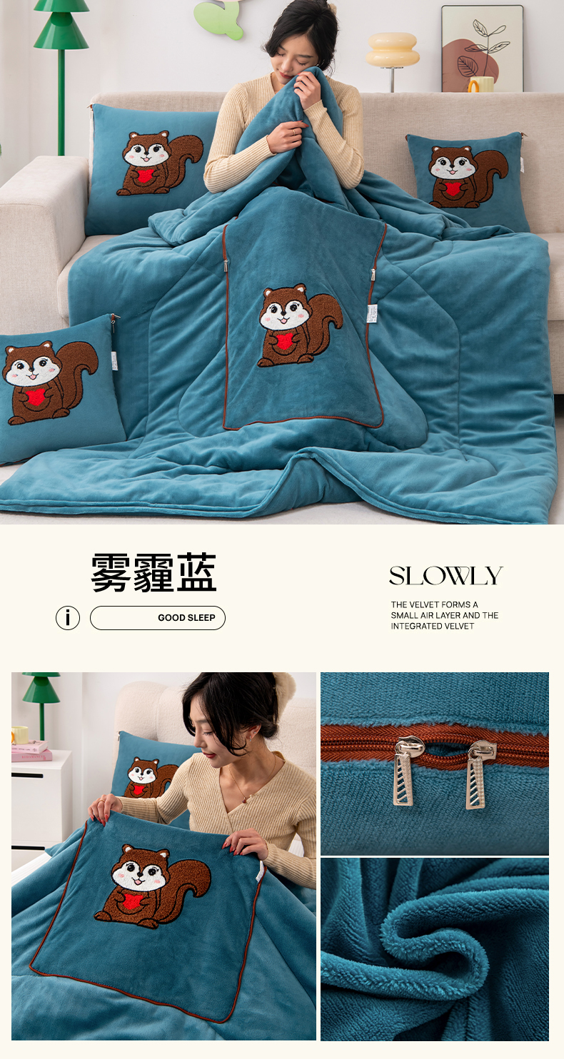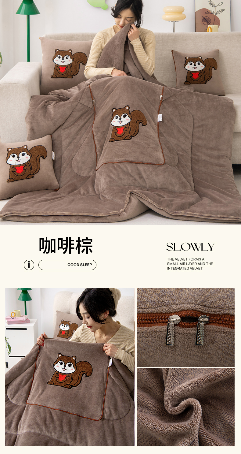 商品名称:宝马家纺(原梦童画) 2025新款牛奶绒小松鼠抱枕被 岩石灰