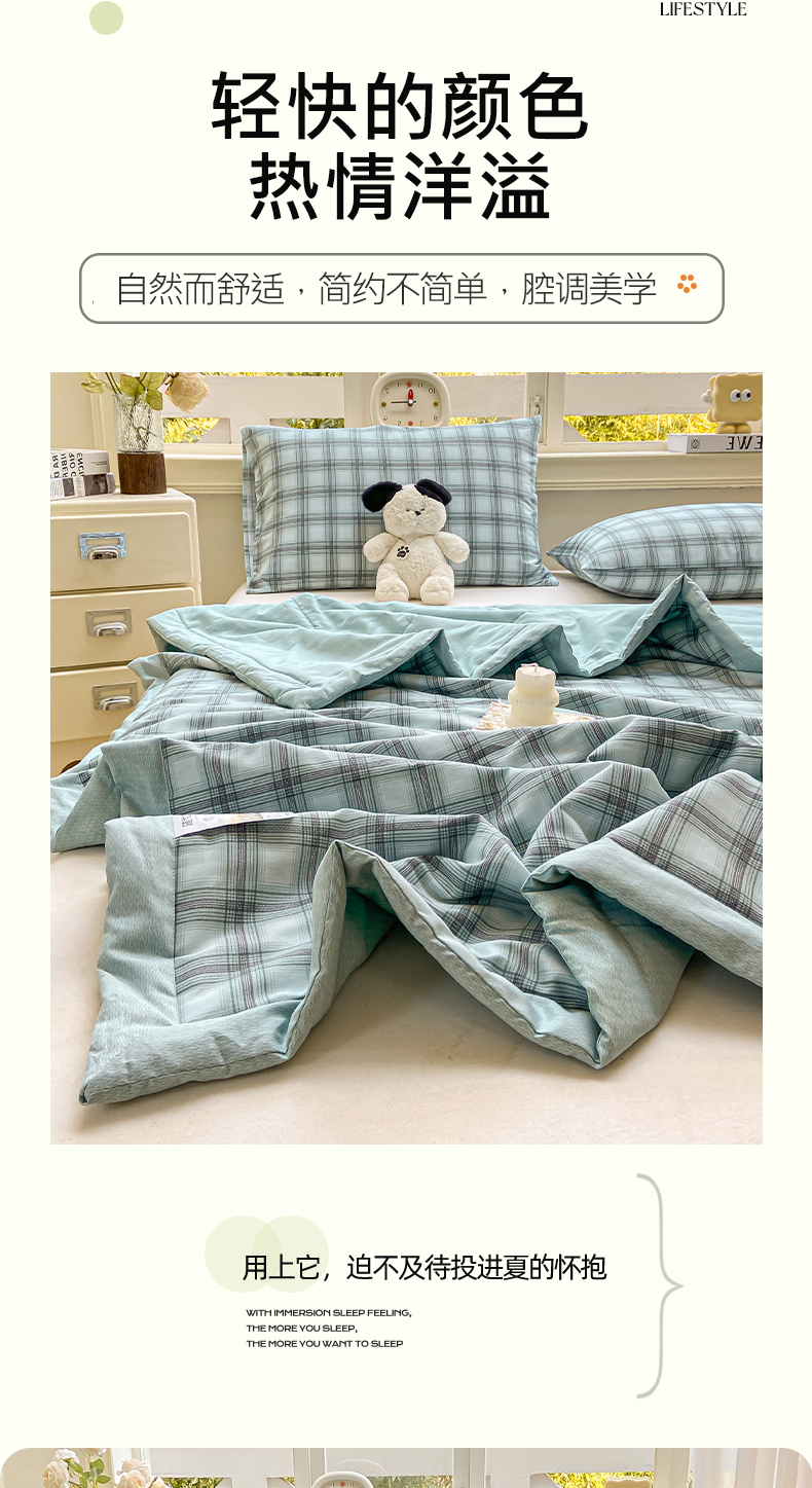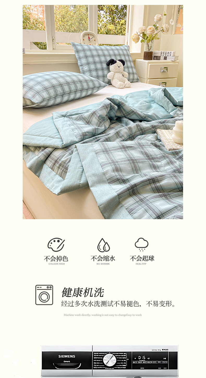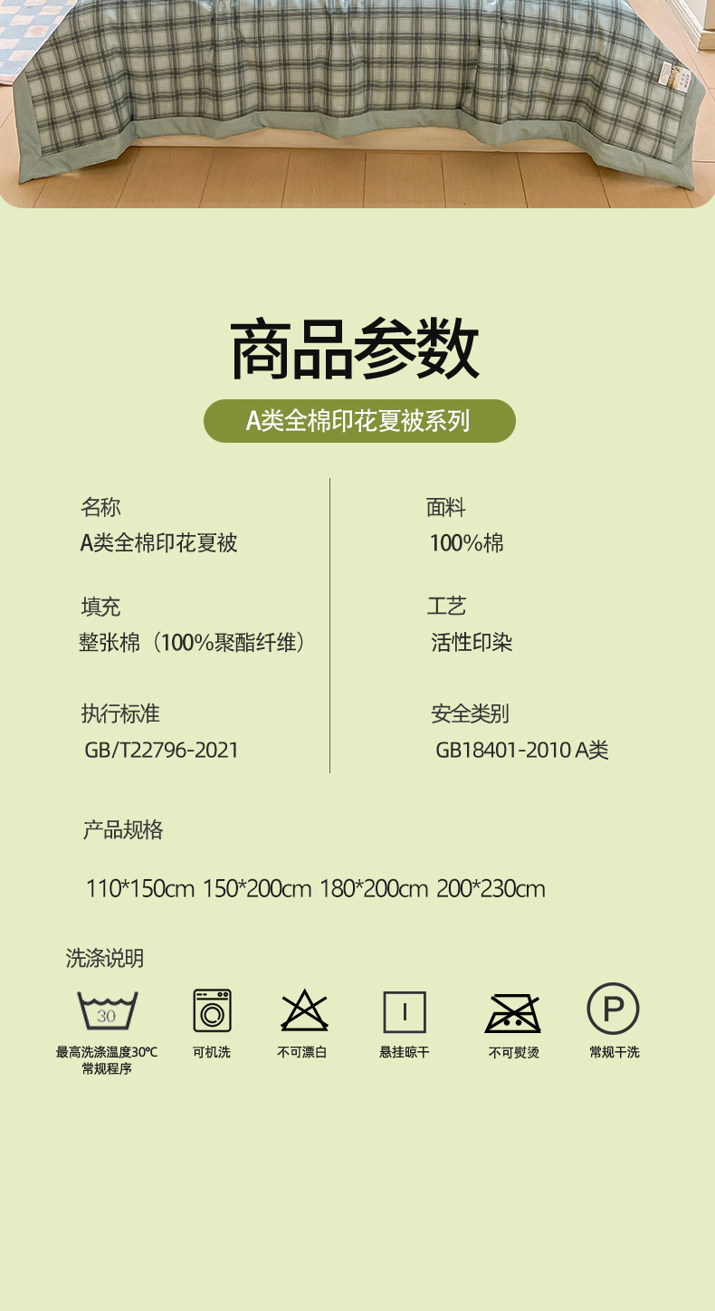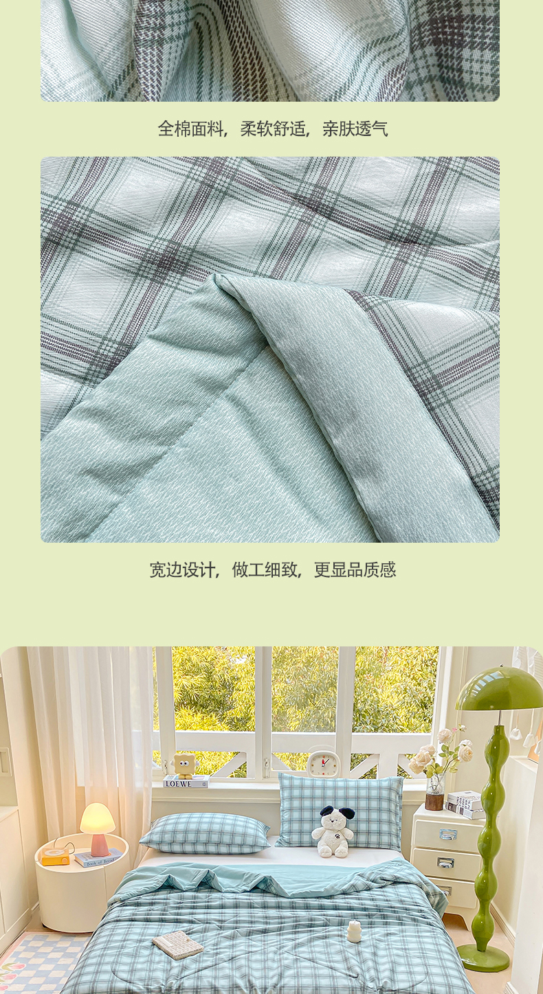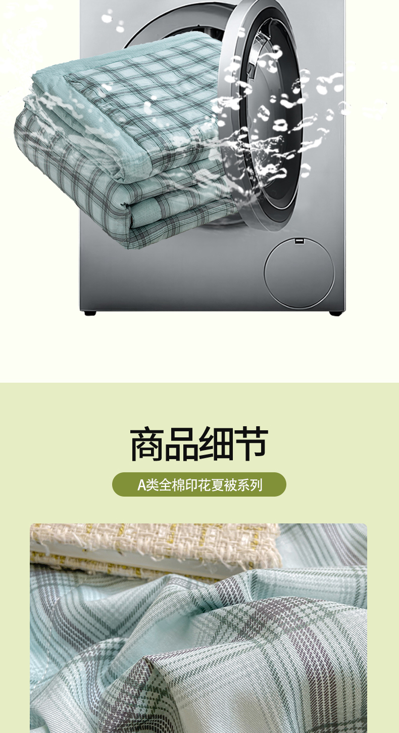 商品名称:沃尔居 2025新款双面全棉印花夏被可机洗小清新纯棉夏凉被薄被芯空调被子 雅格-绿