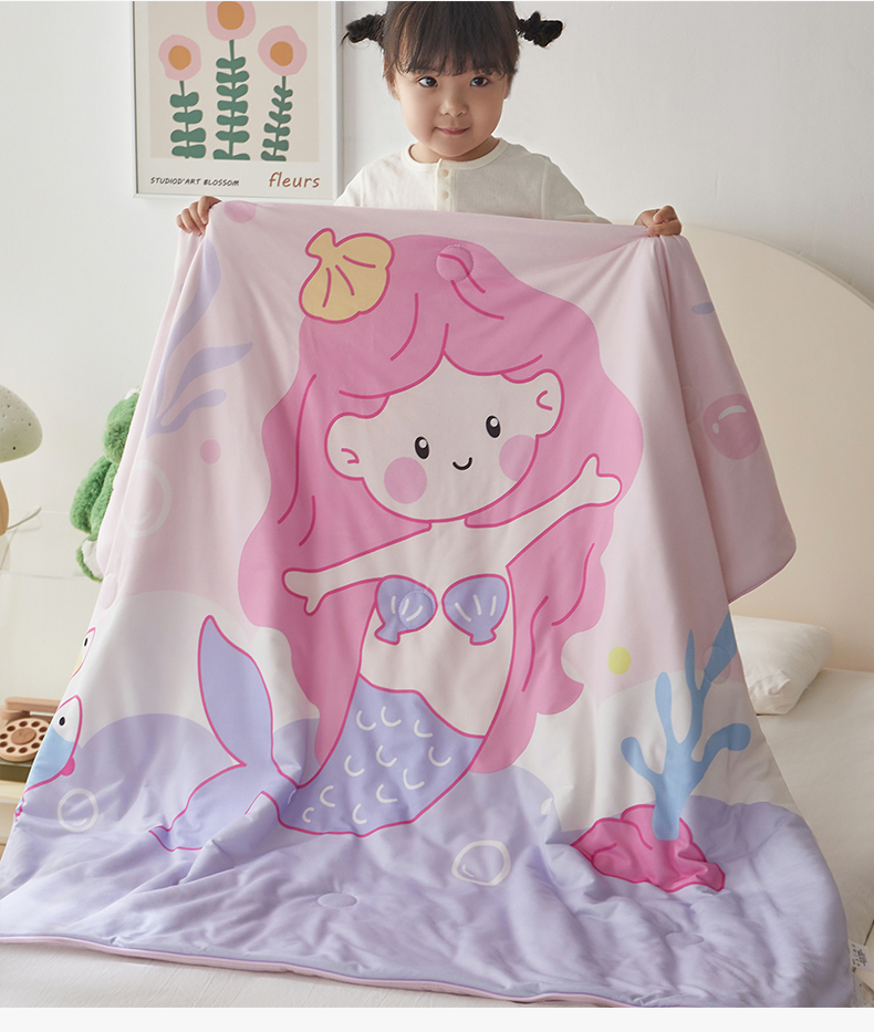 荷马之梦 2025新款卡通数码印花大版针织棉儿童夏被-绵绵系列 小美人鱼