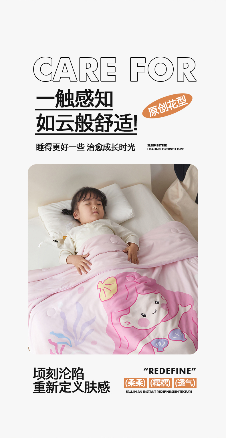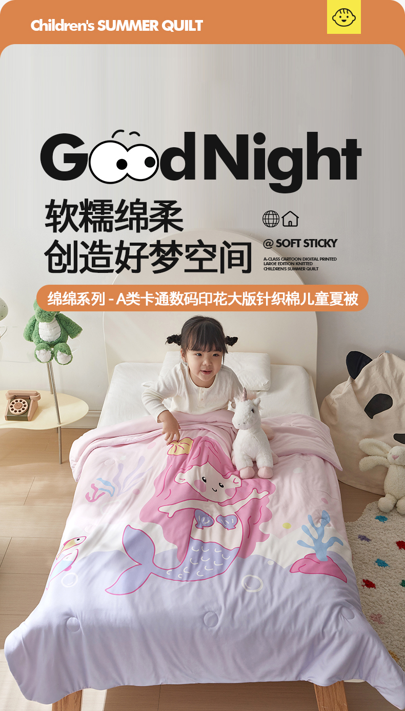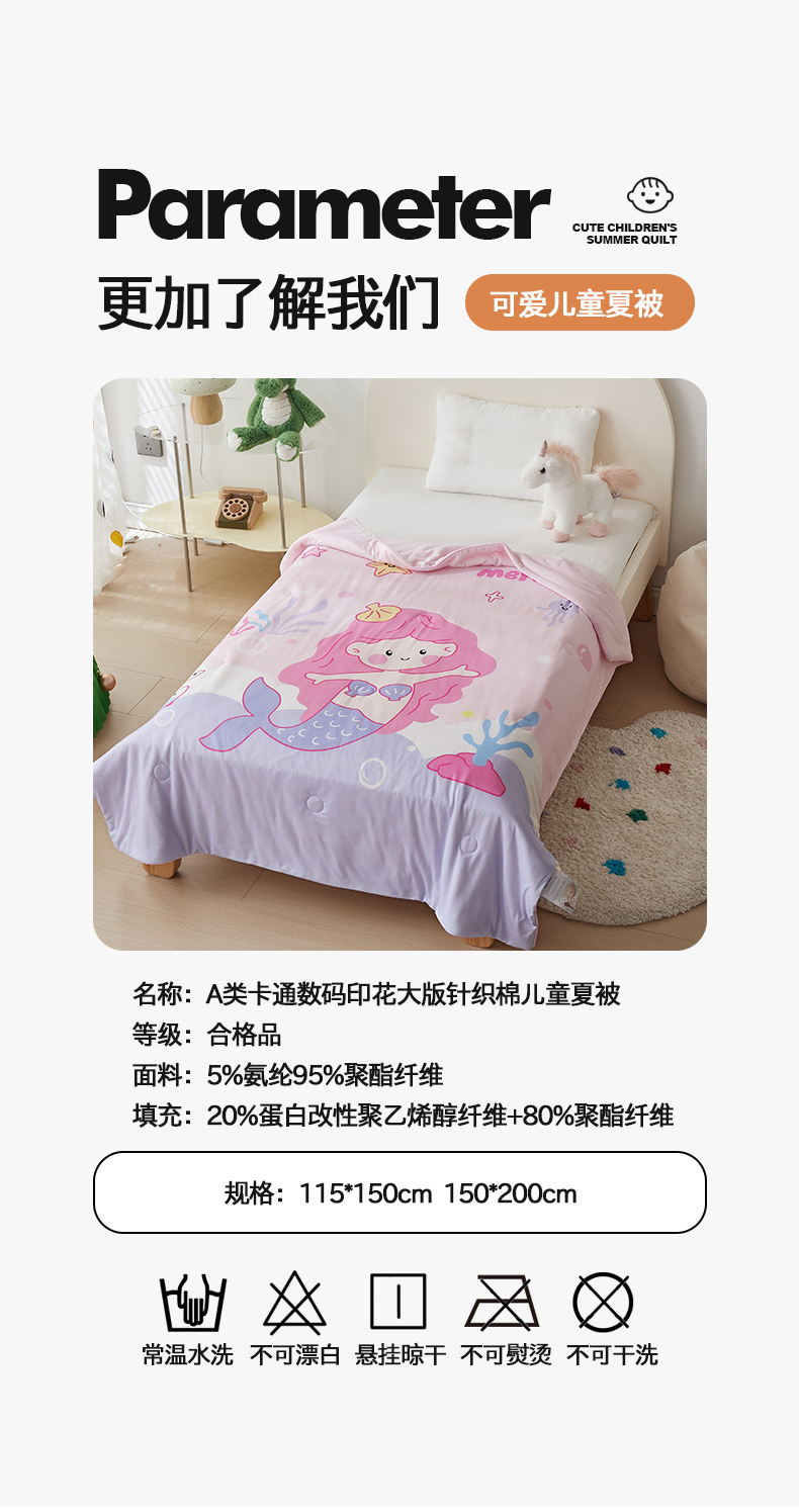 商品名称:荷马之梦 2025新款卡通数码印花大版针织棉儿童夏被-绵绵系列 小美人鱼