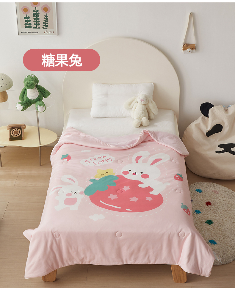 (总)全棉40s水洗棉绣花儿童夏被纯棉夏凉被(心想),丛林狮子,交通日,可爱挖机,萝卜兔兔,暖羊羊