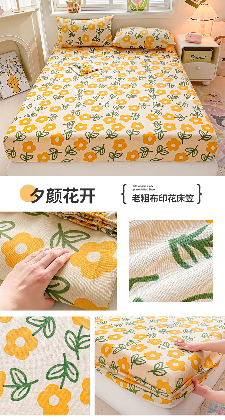 • 91家纺网 家纺一手货源 找家纺 晓时候2025新款老粗布床笠凉席 夕颜花开