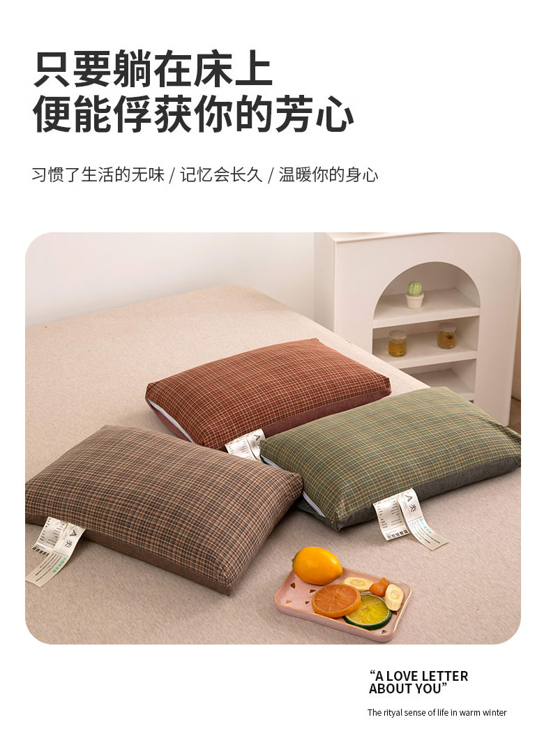 商品名称:(总)2025新款全棉色织水洗棉双拼简格荞麦枕 枕头枕芯