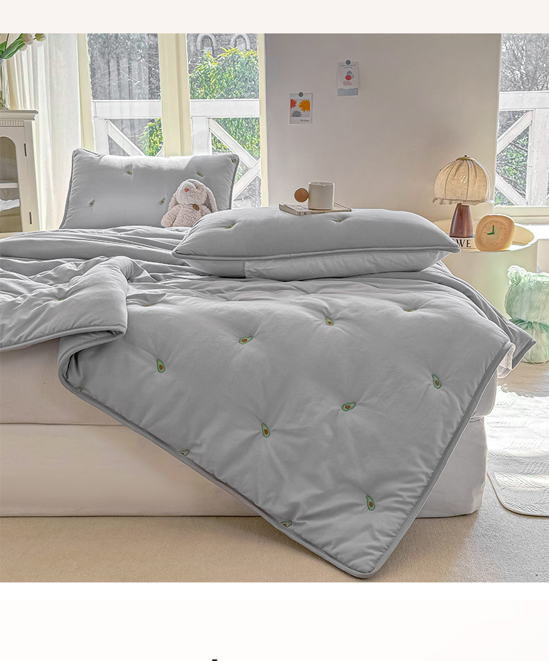 商品名称:2025新款A类亲肤大豆棉刺绣床垫床褥学生床垫-夏被 牛油果灰