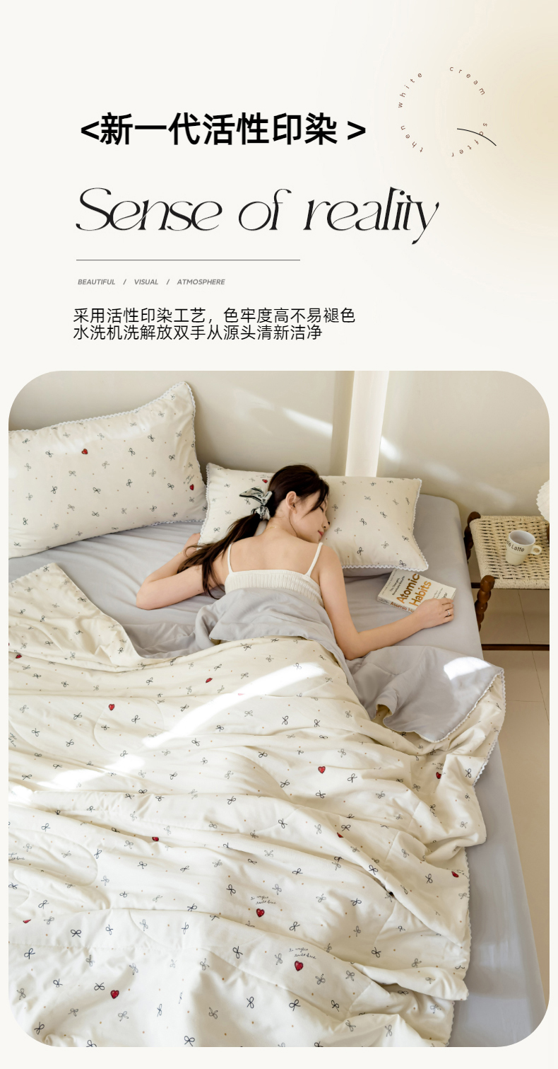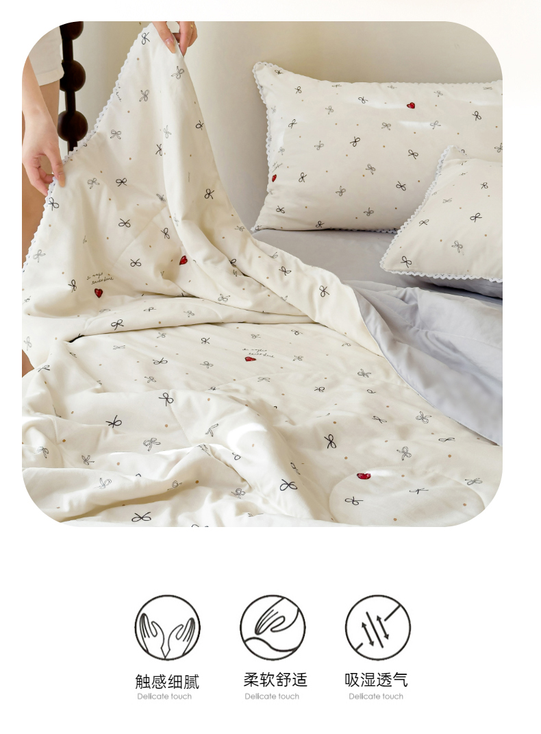 当前位置: 91家纺网 > 商品网购 > 被子 > 夏被 > 2025新款针织棉双层纱小花边棉花夏凉被 爱心蝴蝶结