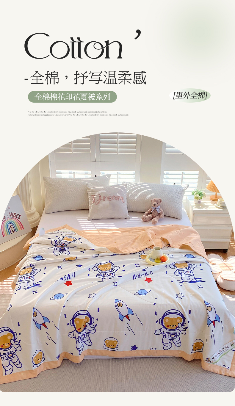 商品名称: 2025新款A类全棉棉花夏被纯棉夏被 被子被芯 太空小熊