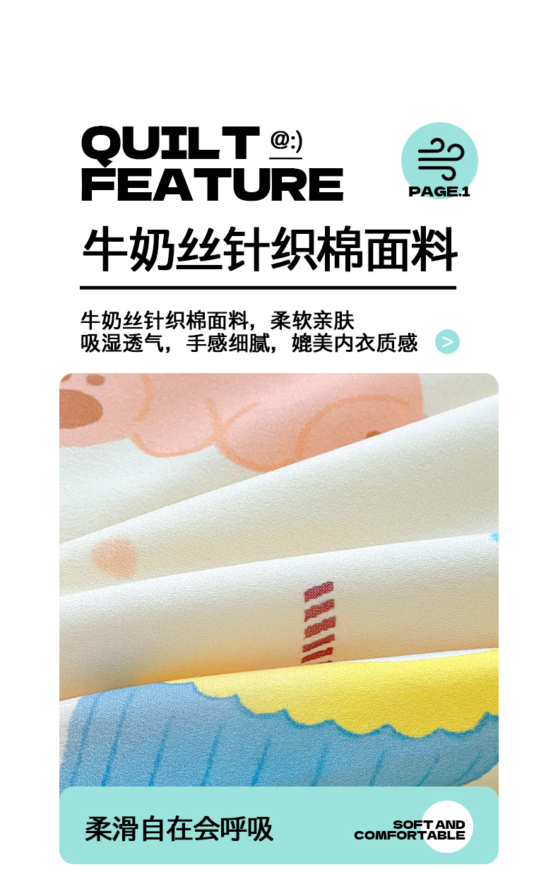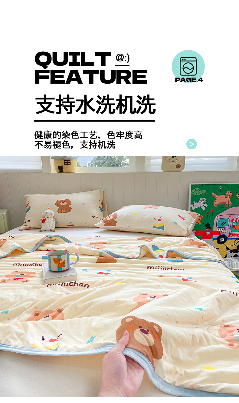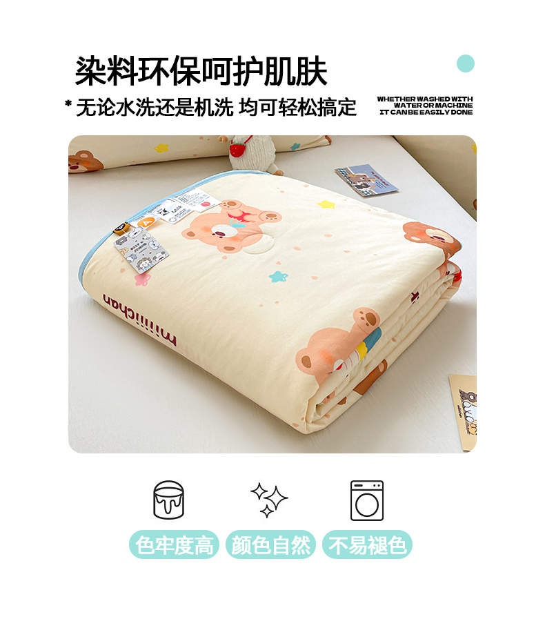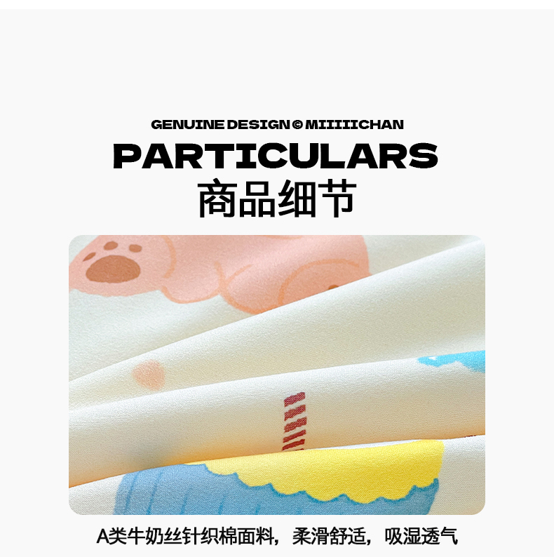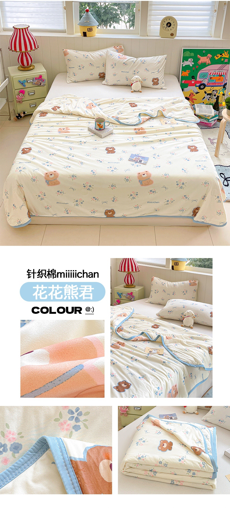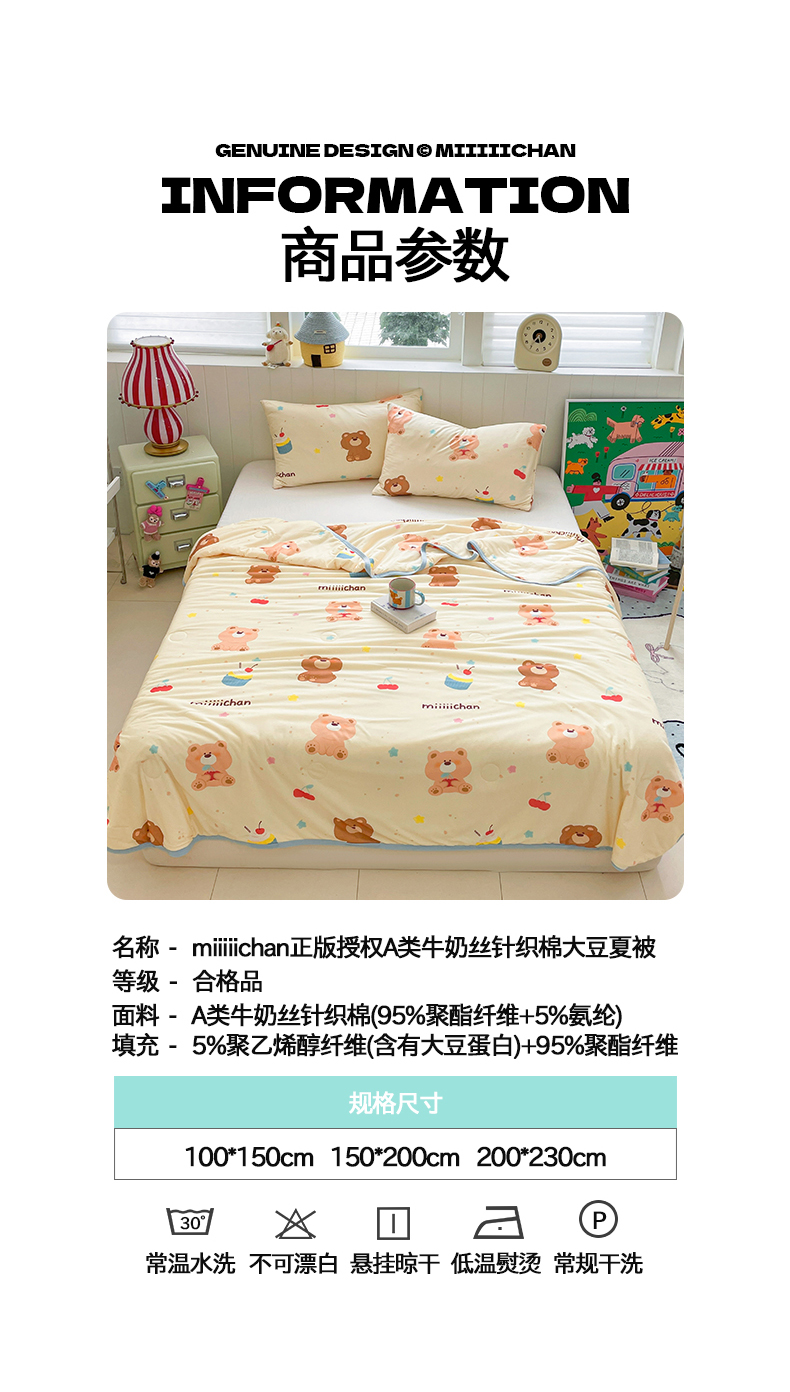 商品名称:桃子家居 2025新款A类高品质正版授权miiiiichan可爱卡通狗狗白熊女孩牛奶丝针织棉夏被夏凉被空调被 针织棉miiiiichan-A甜甜棕熊