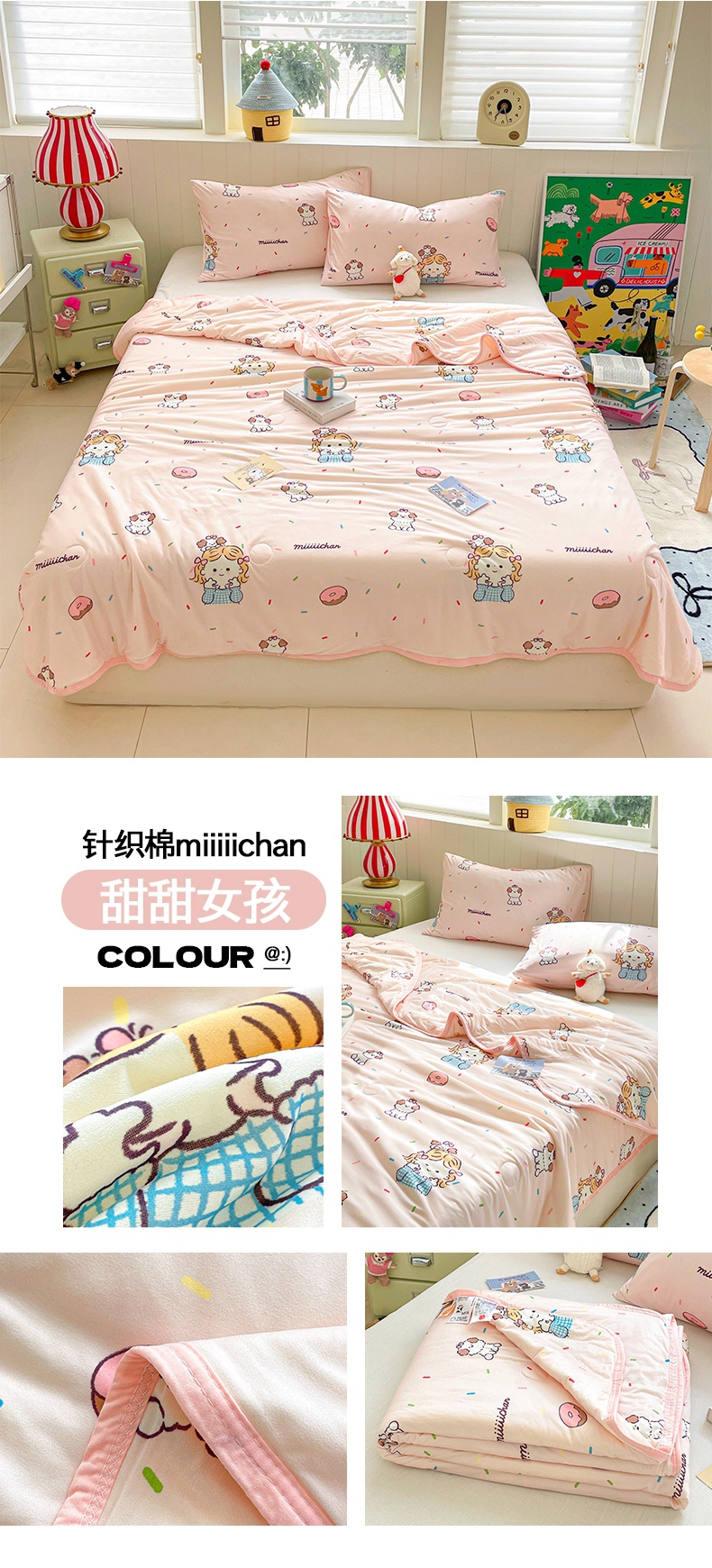 桃子家居 2025新款A类高品质正版授权miiiiichan可爱卡通狗狗白熊女孩牛奶丝针织棉夏被夏凉被空调被 针织棉miiiiichan-A甜甜棕熊