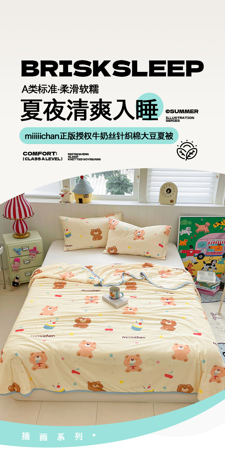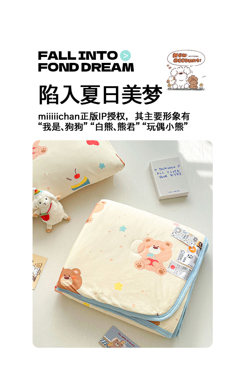 被子 > 夏被 > 桃子家居 2025新款A类高品质正版授权miiiiichan可爱卡通狗狗白熊女孩牛奶丝针织棉夏被夏凉被空调被 针织棉miiiiichan-A甜甜棕熊