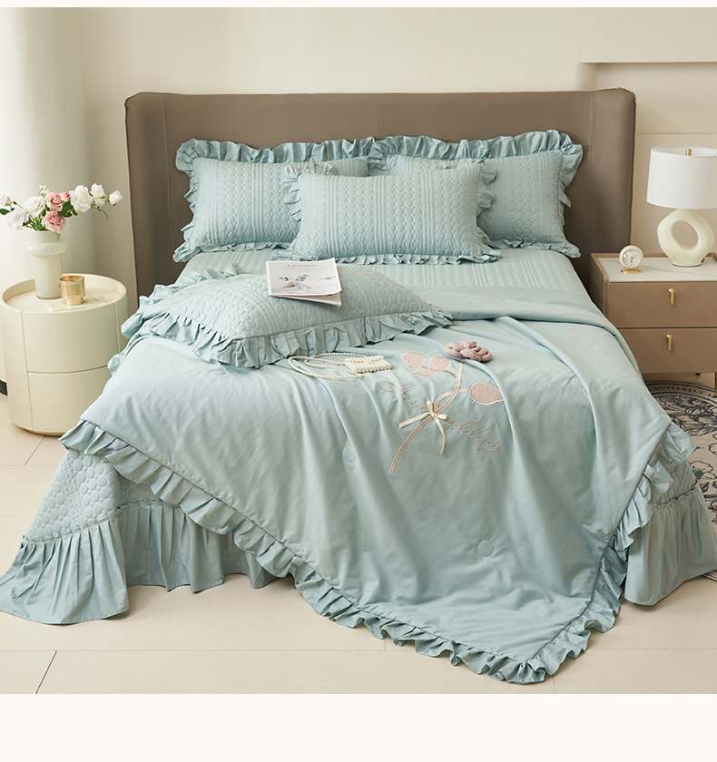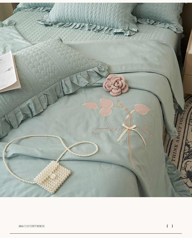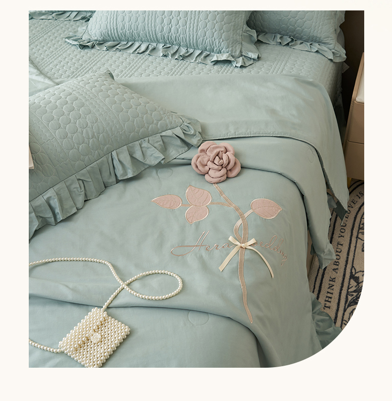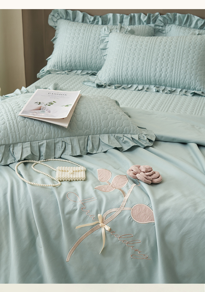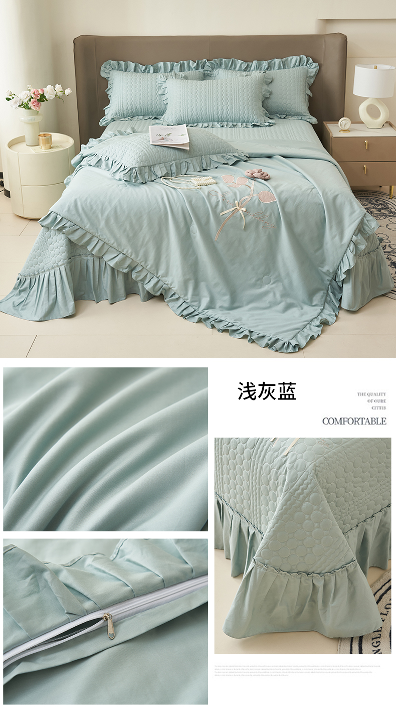恒爱 2025新款A类全棉纯棉多功能夏被夏凉被空调被四件套-一枝独秀 浅灰蓝