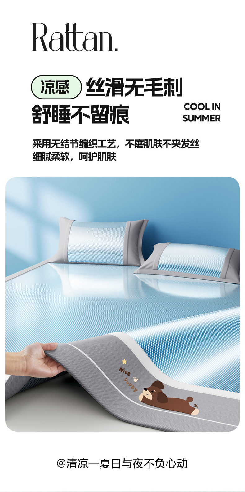 商品名称:川悦生活 2025新款纯色凉感冰丝席-小床 帕帕狗仔-水蓝